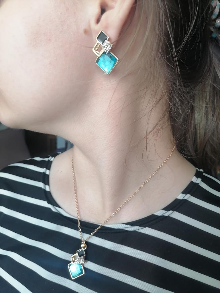Bellissimo set, il colore blu lago è semplicemente bomba. La catenina, come sempre, un po' corta, ma per il resto tutto bene.