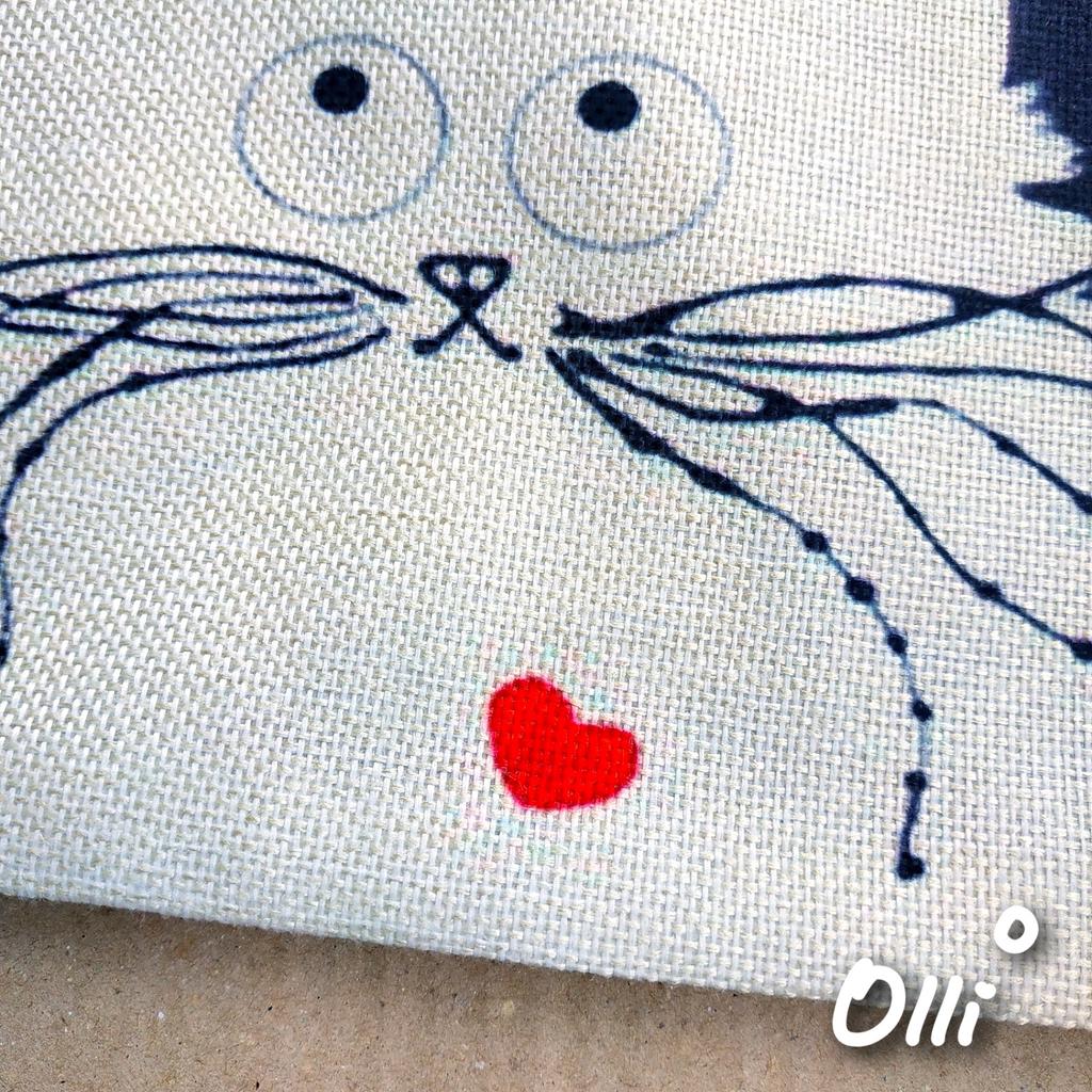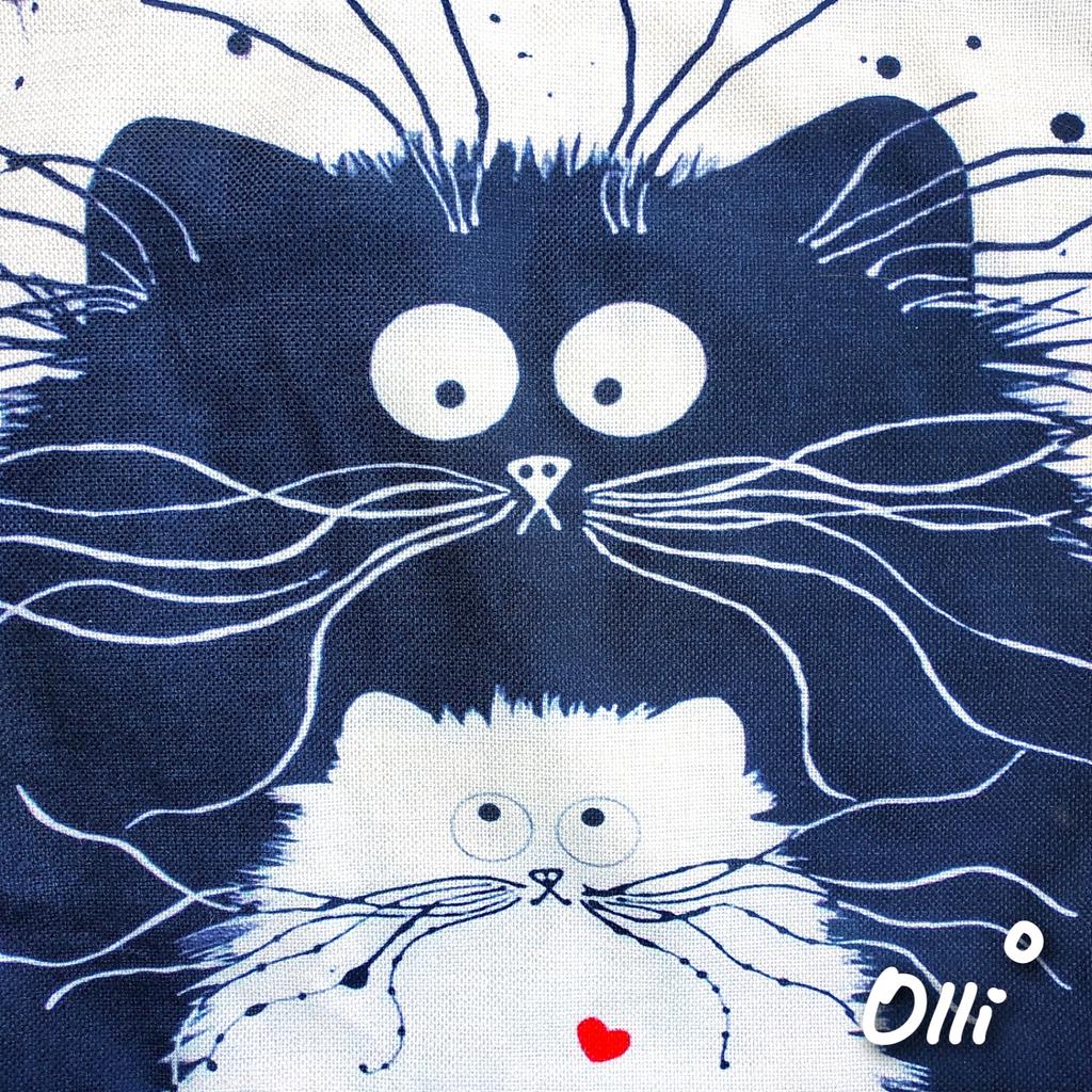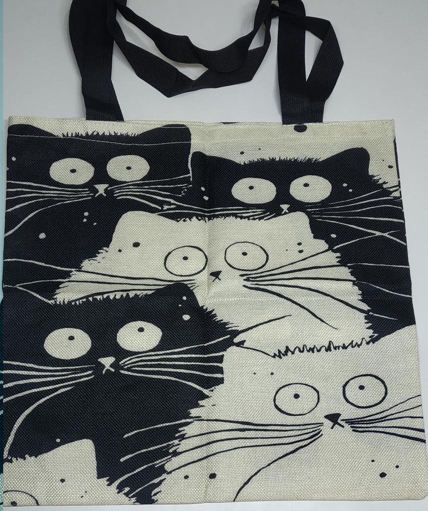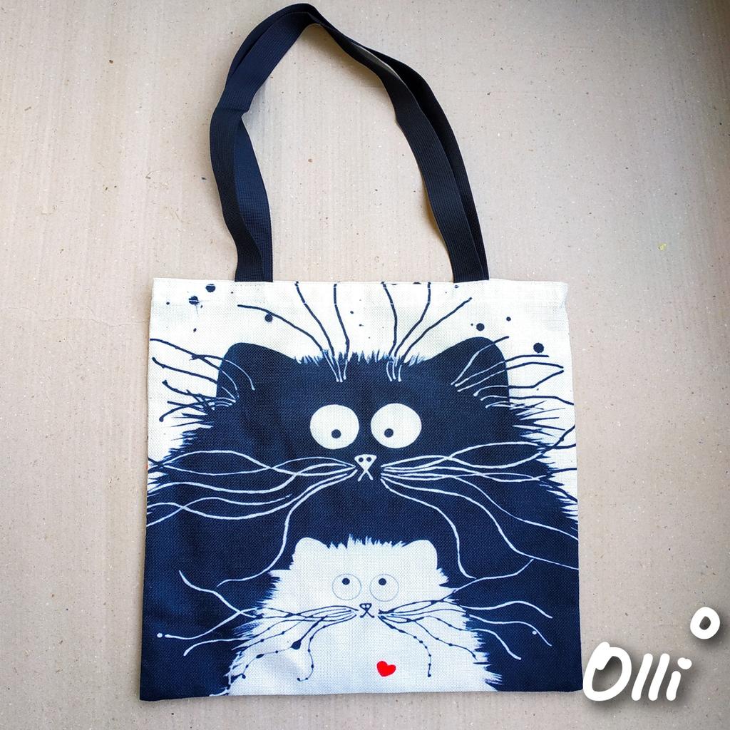Bella borsa in lino, manici lunghi, a spalla. Gatti carini :)