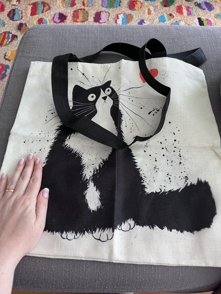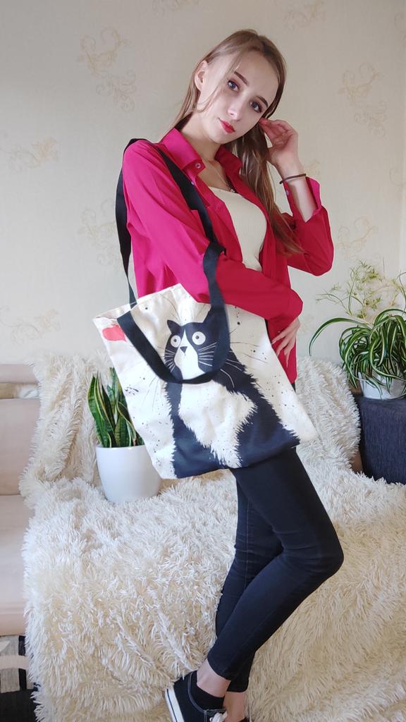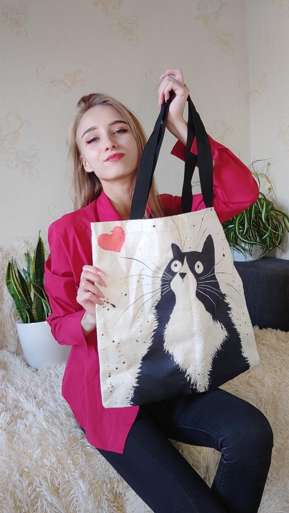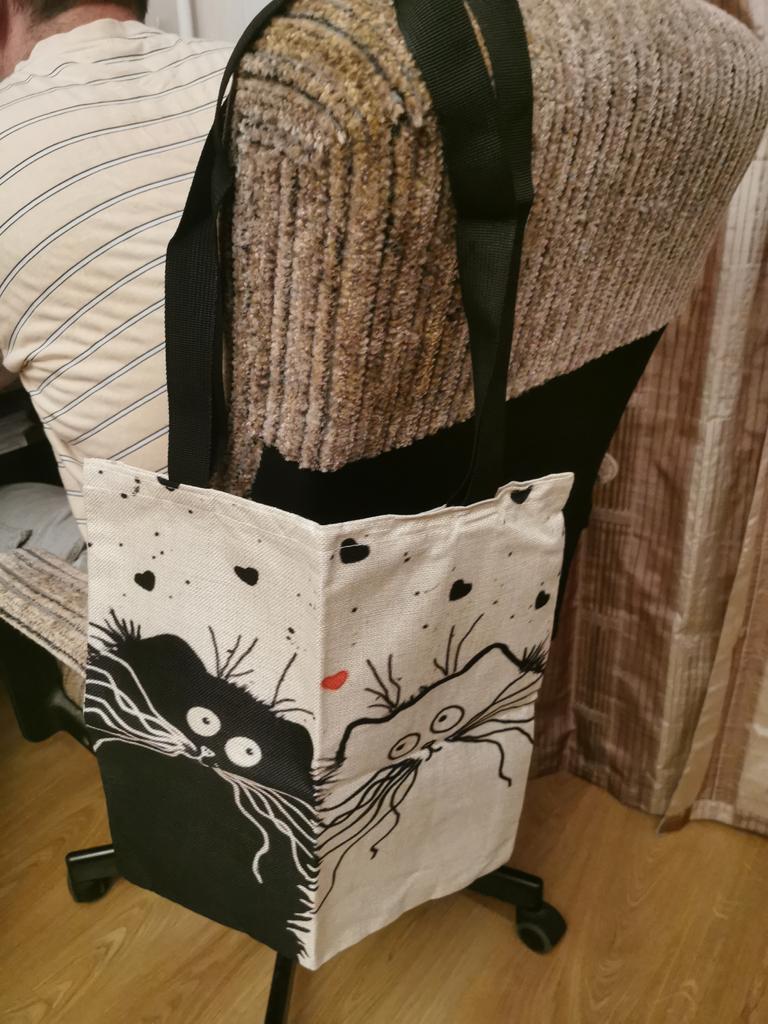 Shopper semplicemente fantastico❣️in tessuto, bel disegno con gattini🐈🐈⬛manici lunghi, è piaciuto molto, si può anche regalare👌 grazie Joom