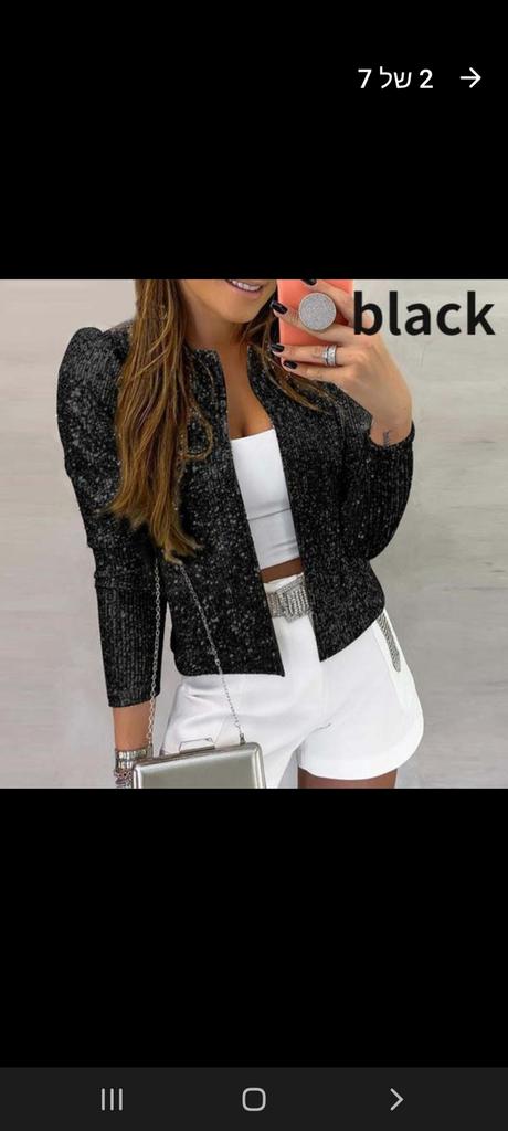 Ho la giacca nera. Sembra molto chic e si adatta bene. Ma ho ordinato due taglie più grandi. Sarei felice di consigliarla.