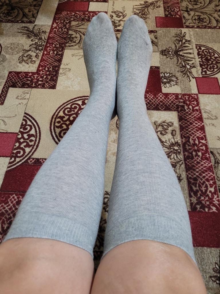 Si tratta di calze alte fino al ginocchio, non di calze. Caldo. L'elastico nella parte superiore è spesso e non è adatto a tutti. Non sono larghi. su una gamba normale