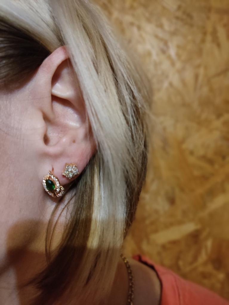 La consegna è veloce. Gli orecchini sono semplicemente meravigliosi. Tutto sembra nella foto. Sono piccoli. Solo gli elementi di fissaggio sono leggeri, quindi tutto è semplicemente fantastico.