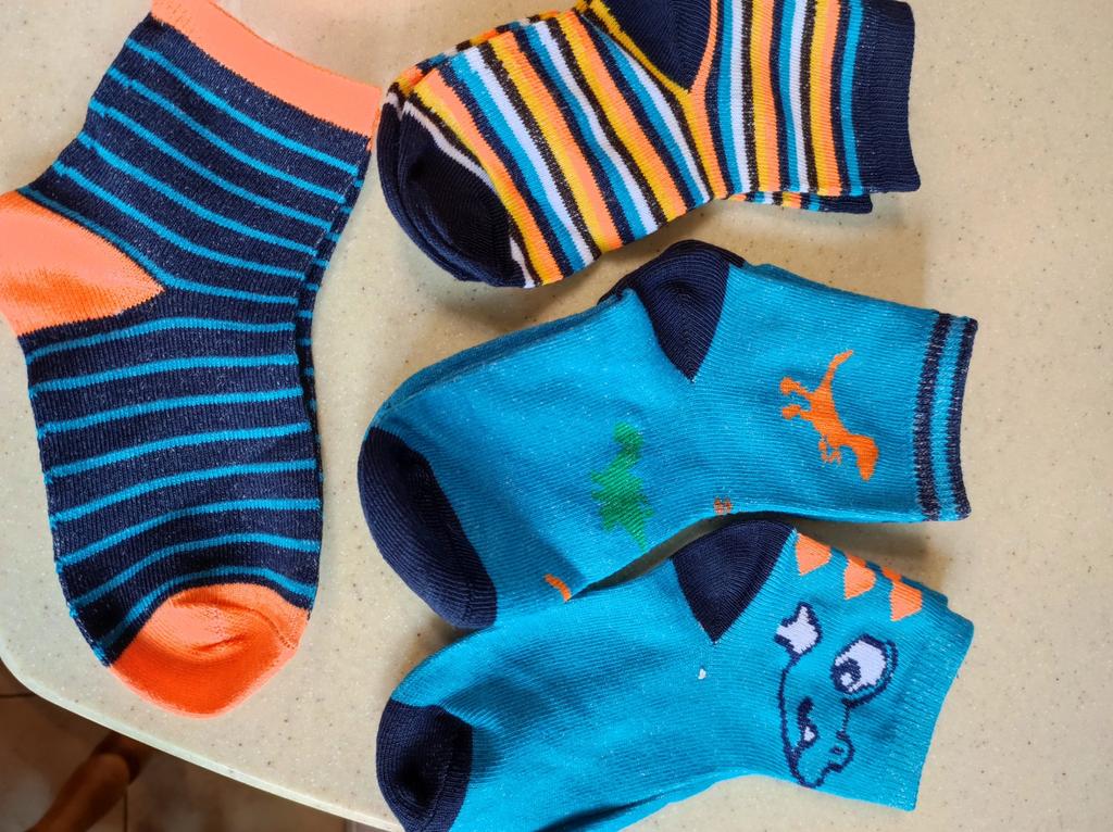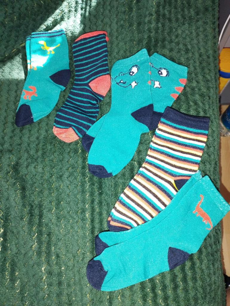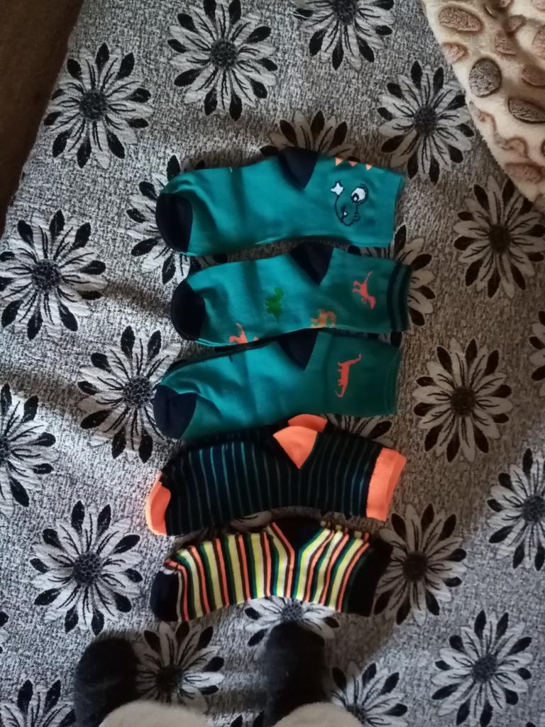 Calzini con dinosauri, tutti lisci, senza inserti come in foto, colori leggermente diversi, altrimenti ca.