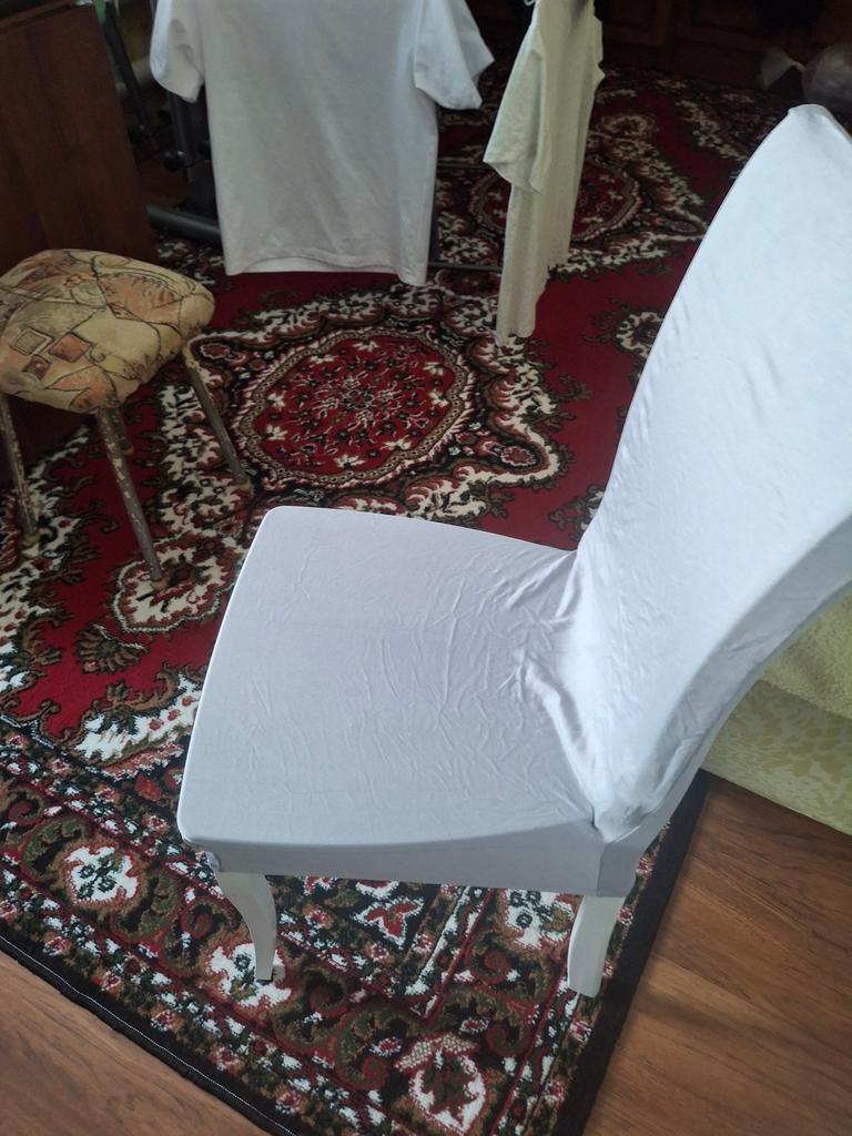 Ricevuto tre settimane dopo l'ordine, il che è molto veloce, in un pacco combinato. La custodia è cucita bene, il tessuto è sottile, elastico (di questo tipo si cuciono i costumi da bagno). Per quanto riguarda le dimensioni, in generale è andata bene, è un po' grande sulla schiena della sedia. Grazie a tutti