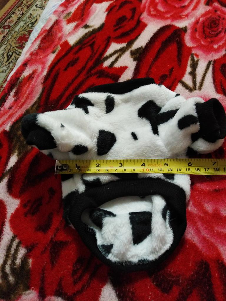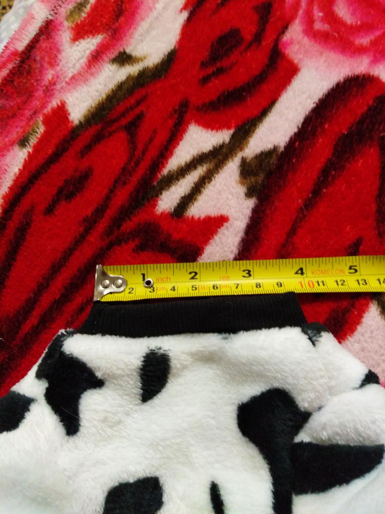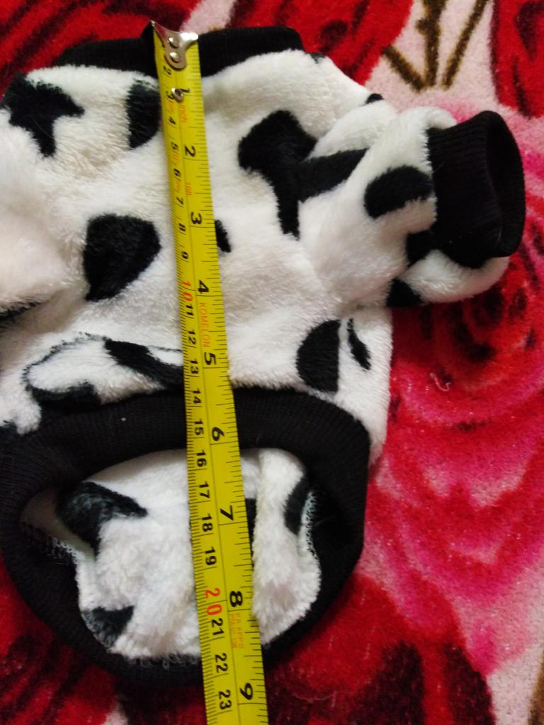 Molto morbido . Non facile da mettere sulle gambe perché piccole aperture ma tiene al caldo. Per il mio chihuahua di 6 mesi le maniche sono un po' larghe.