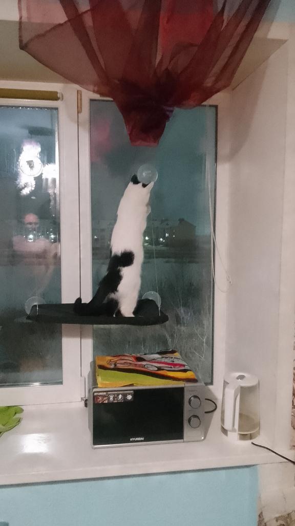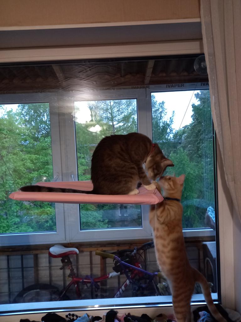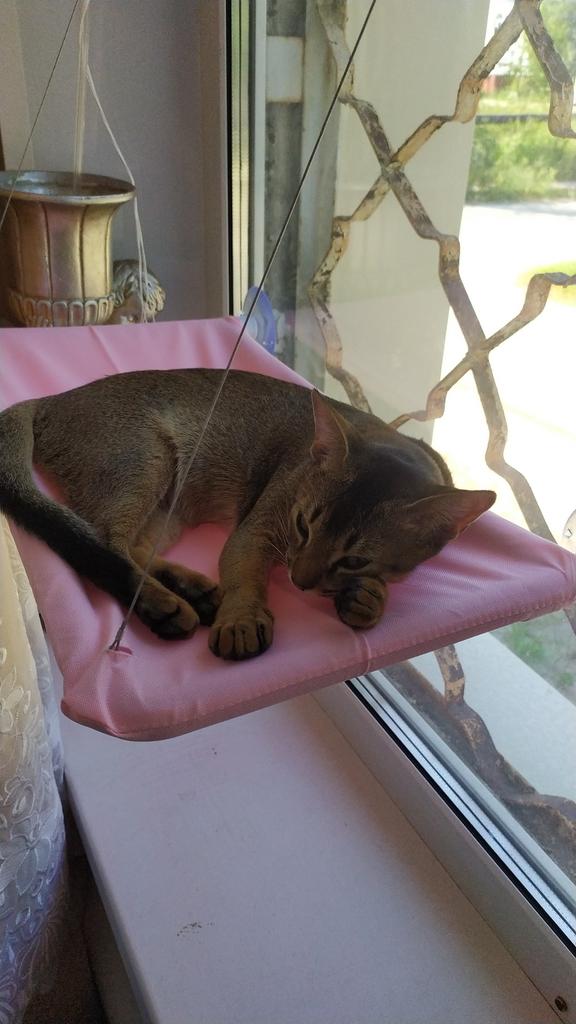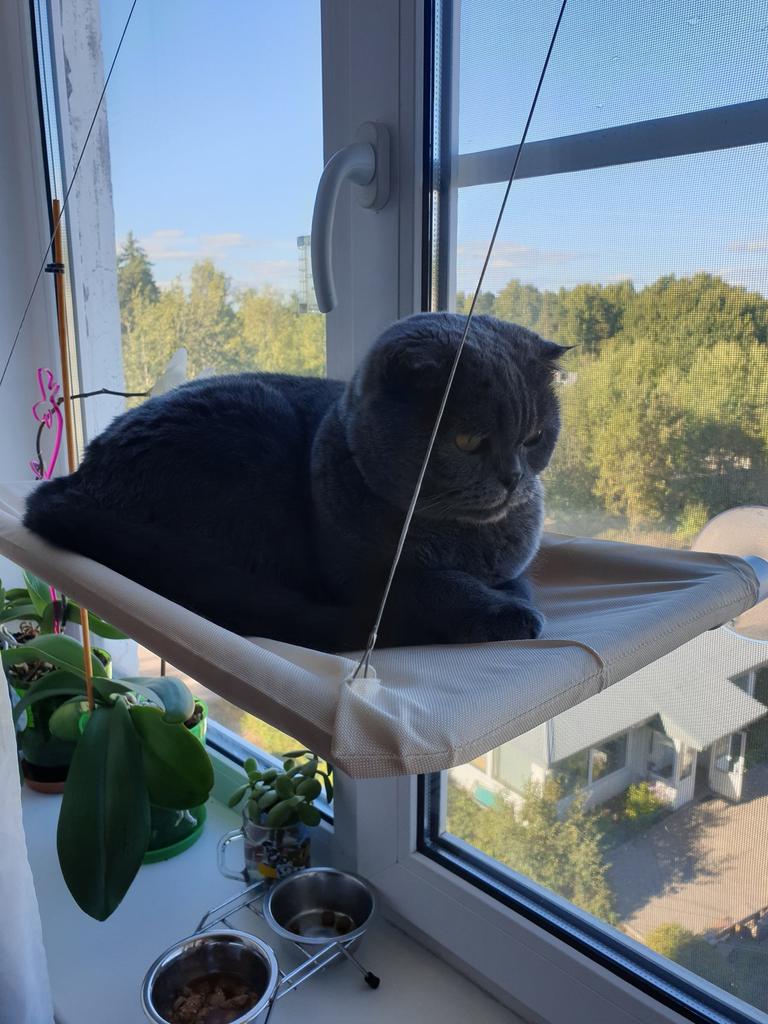 Il nostro gatto, a quanto pare, non è uno scalatore, lo hanno attirato a malapena su questa amaca e noi stessi abbiamo dovuto piantarlo con dolcetti e giocattoli.
