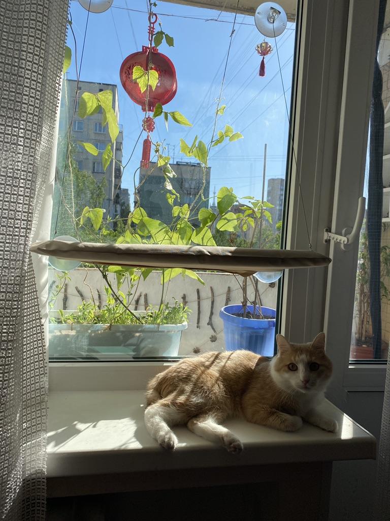 Nemmeno ancora disfatto.... 😕 Passarono tre mesi, l'hanno disfatto e appeso, ma per qualche motivo al gatto non è piaciuto 👿 non voleva sdraiarsi lì Ora abbiamo un fiore lì, niente male neanche questo 😊