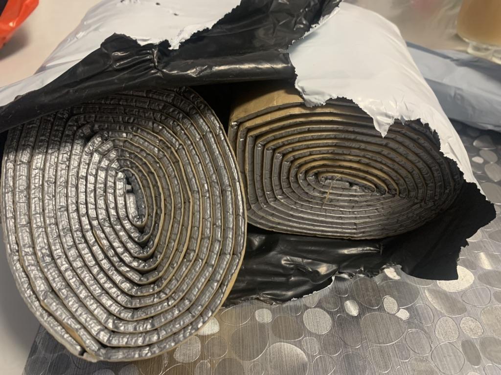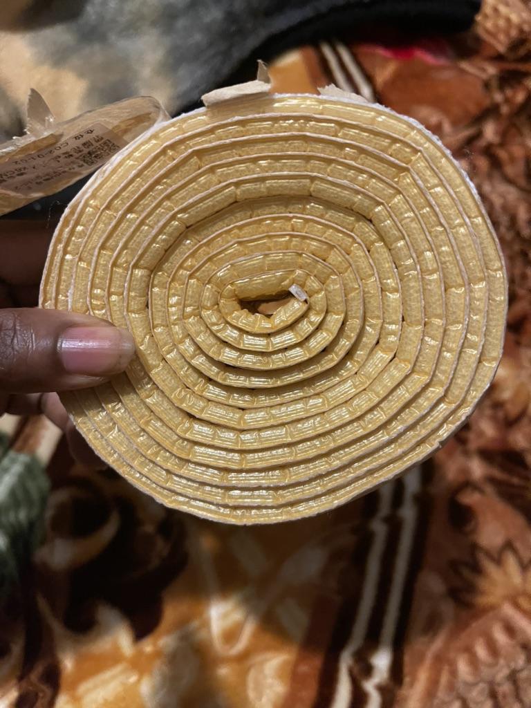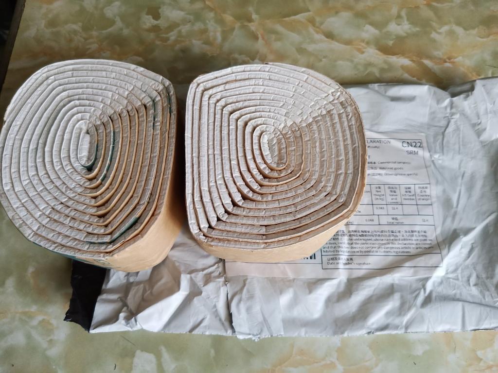 Arrivato in rotoli, ben imballato. Non l'ho ancora incollato