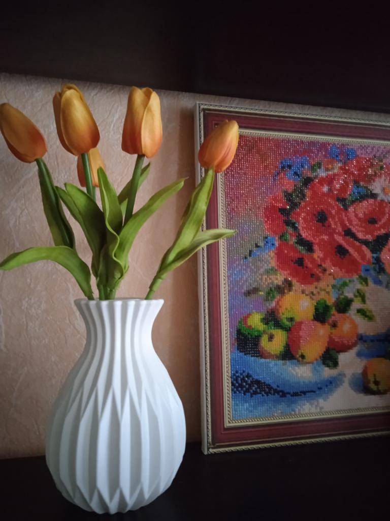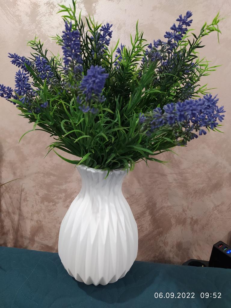 Bellissimo vaso per fiori artificiali. Non provato su fiori veri. Il vaso è molto leggero.