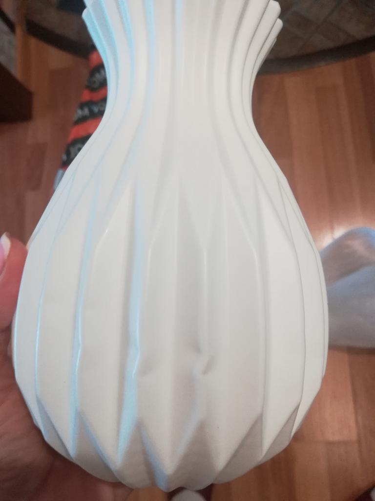 Il vaso è arrivato dopo 3 settimane ed era ben confezionato. Il vaso mi ha davvero convinto perché nella realtà sembra molto meglio che in foto. Ho ordinato il colore nero, il colore è intenso, il vaso sembra solido, è di plastica. Consiglio il vaso! Davvero fantastico.