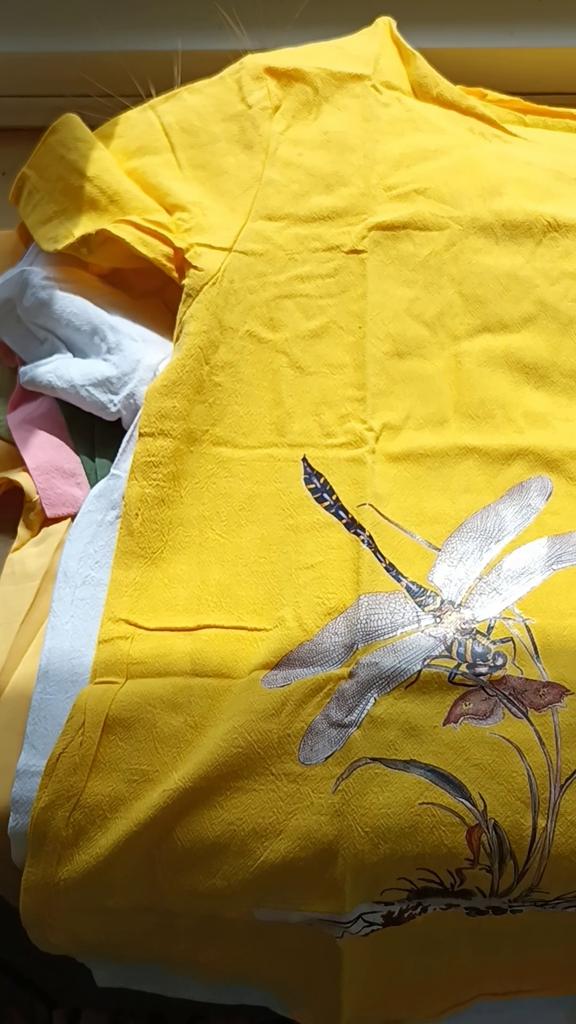 Adesivo termico libellula largo e corto, ci sono delle macchie gialle, non so se si possono lavare via.