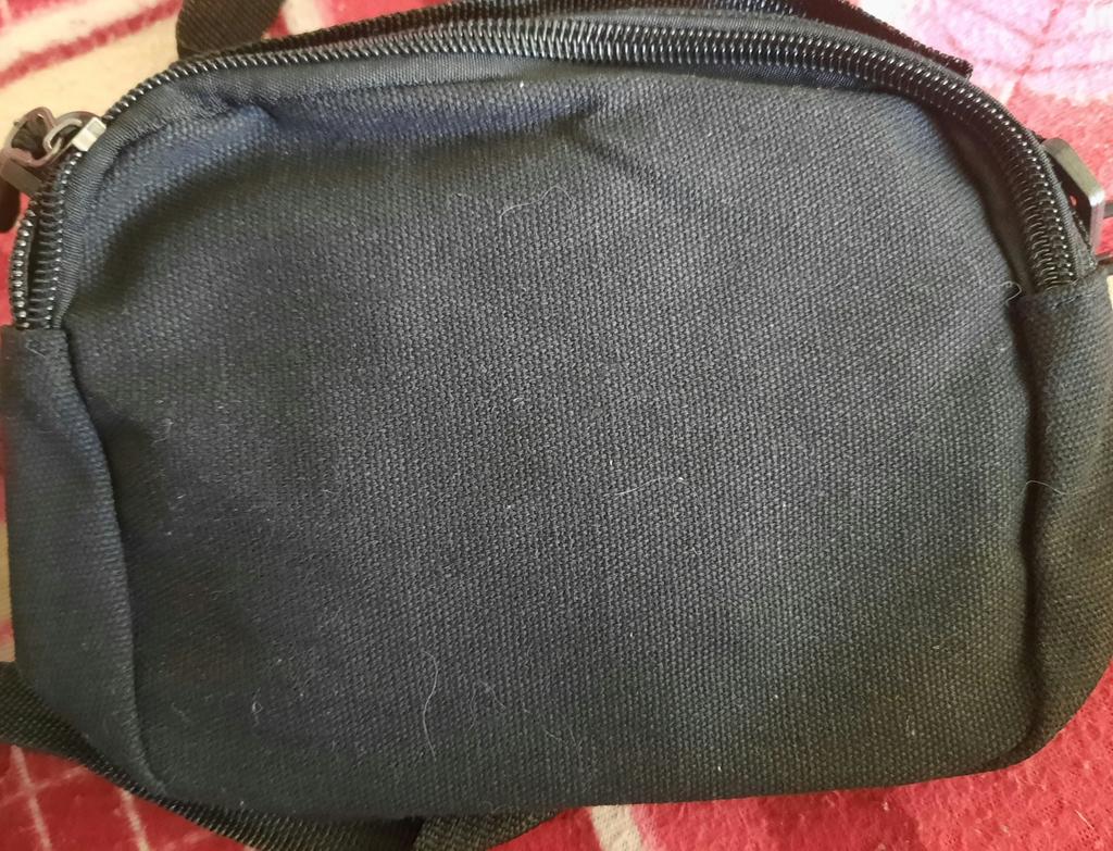 La borsa è super, niente sporge, il materiale è generalmente buono, piccolo 20-22 cm di larghezza, il massimo è camminare con il telefono, lo consiglio)