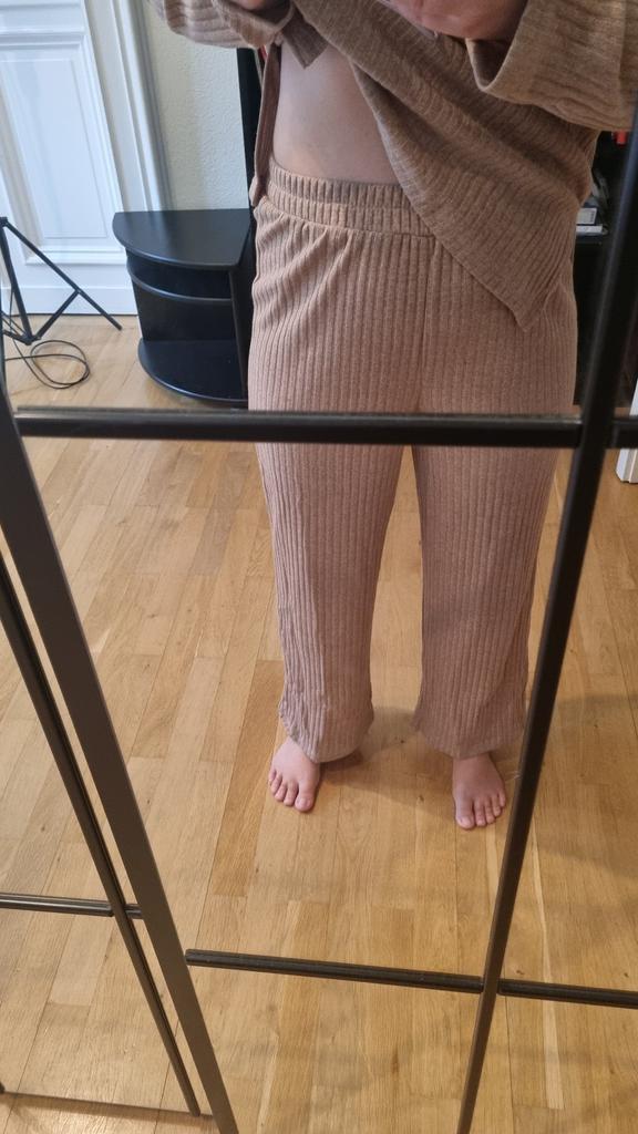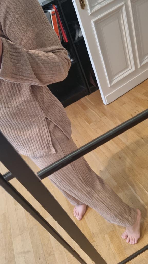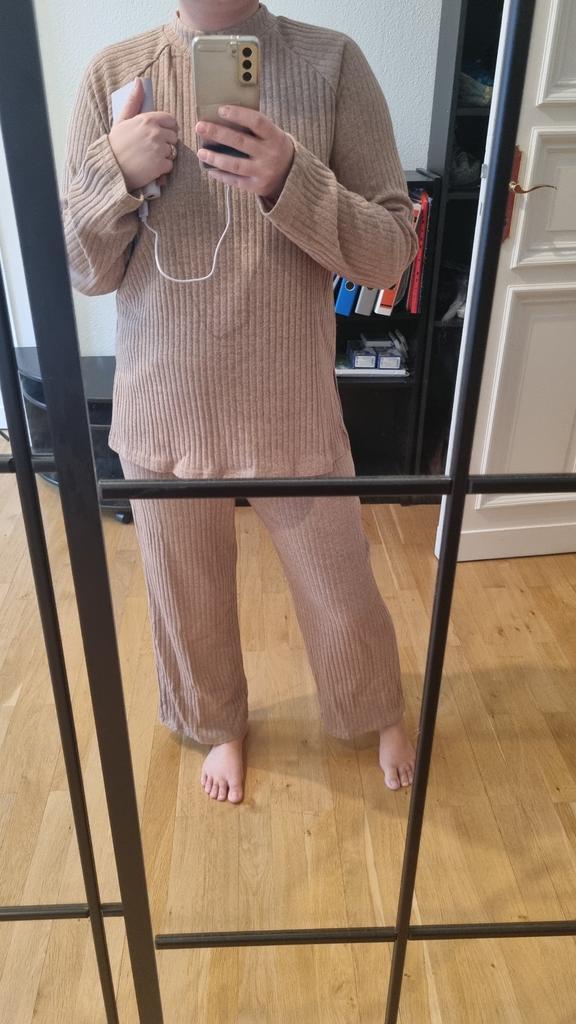 Super bello, caldo, accogliente e confortevole. Le gambe dovrebbero essere un po' più corte per me, ma si può facilmente regolare piegando l'elastico in vita una o due volte e tirando un po' il tutto verso l'alto. Se l'abito avesse ancora le tasche sarebbe assolutamente perfetto!