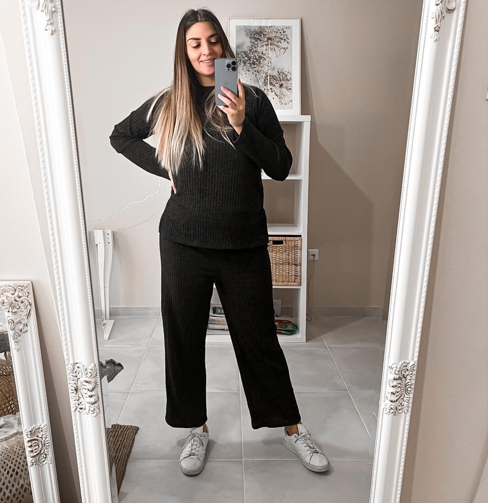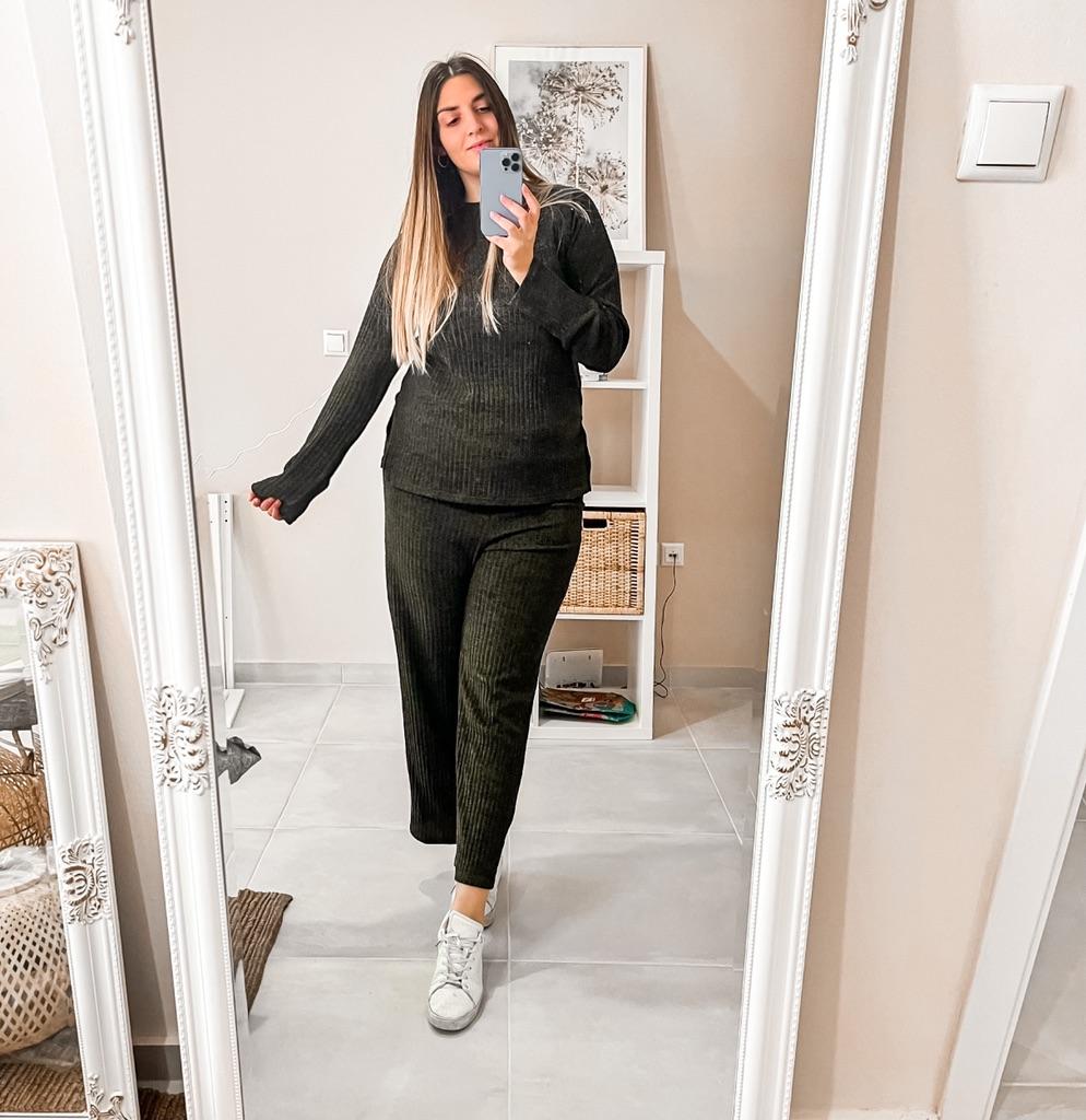 Completo 💚 Adoro il set 💚 L'ho indossato almeno 5 volte da quando è arrivato. È caldo e piacevole sulla pelle ✨ Ho preso la taglia S e mi sta perfettamente 😍 Ordinerò anche altre tonalità 📦 Lo consiglio vivamente ♥️ spinta allo shopping