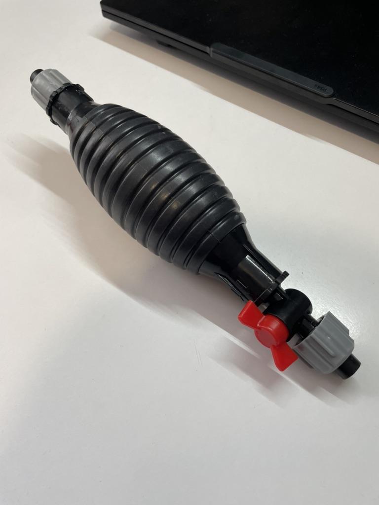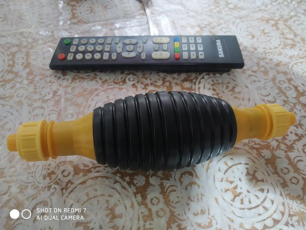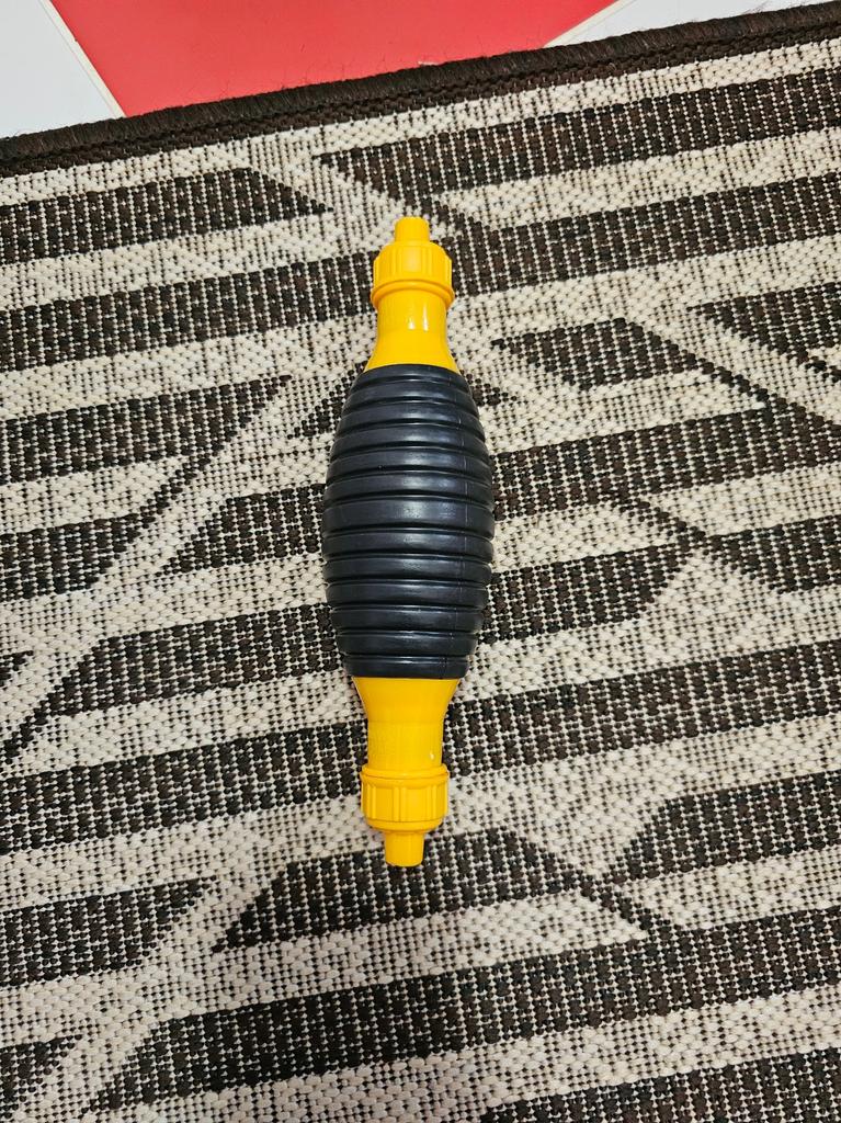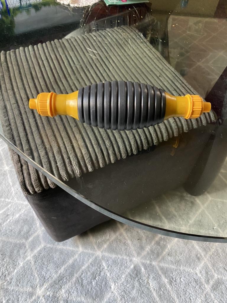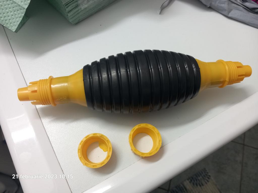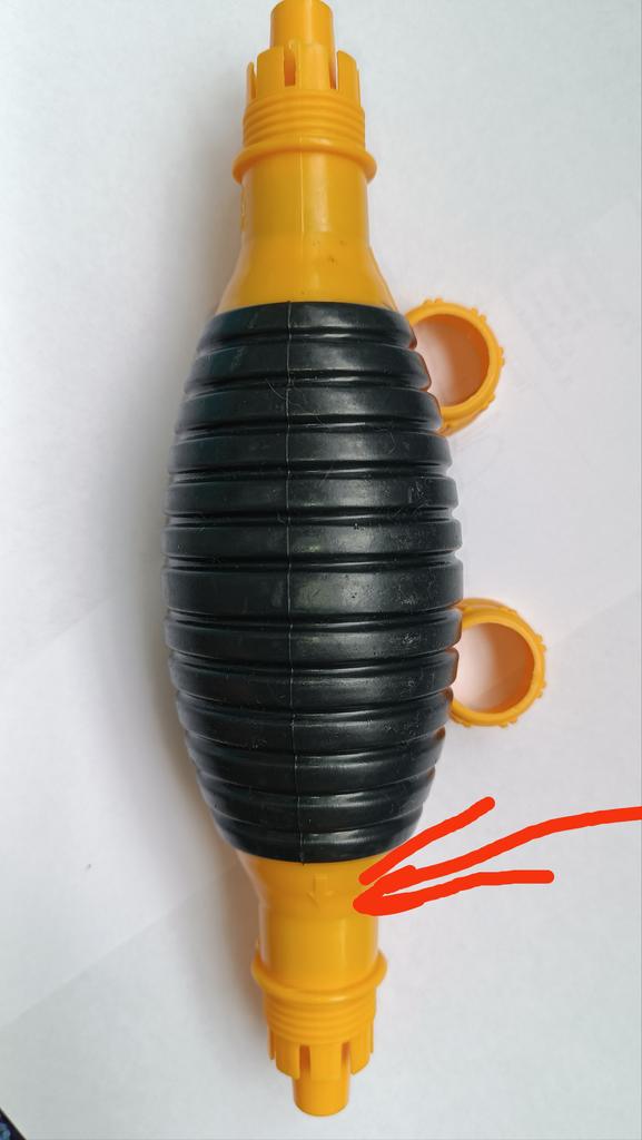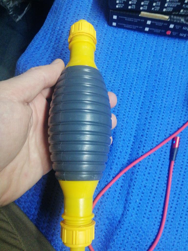 Il bulbo non è di gomma, ma di plastica sottile (ho un'amara esperienza con la plastica), il tempo dirà per quanto tempo funzionerà, si assorbe bene, non so per quanto tempo funzionerà con il carburante