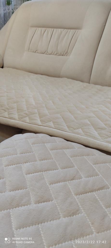 Il rivestimento del divano è secondo me più carino che nelle foto del portale. La qualità costruttiva è molto buona. Il materiale è molto piacevole al tatto. Colore come nelle foto del sito. Il lato sinistro del coperchio ha una trama antiscivolo, che impedisce lo scivolamento del coperchio. Fantastico prodotto. Lo consiglio con tutto il cuore.