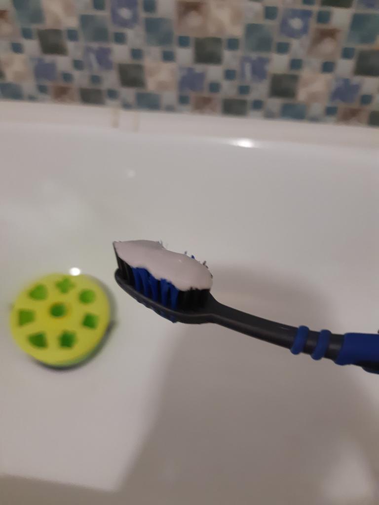 Il tubo è intero, tutto è sigillato. Non vedo ancora alcun risultato, perché l'ho pulito solo due volte. Dentifricio normale.