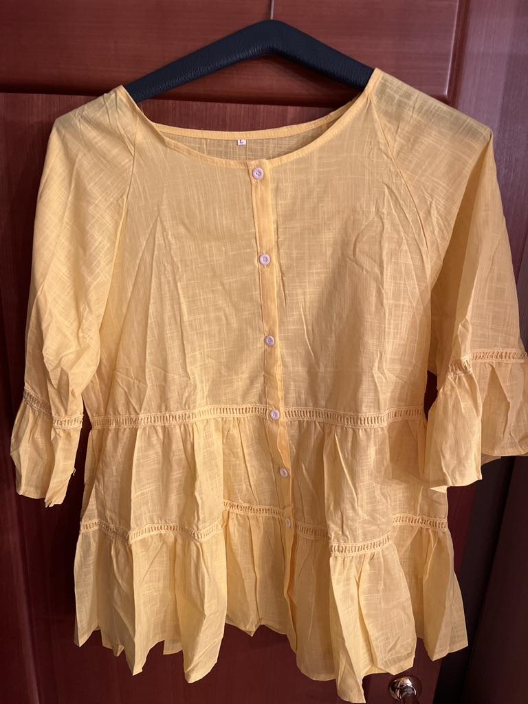 Bellissima camicetta, puoi indossarla anche come giacca, bel tessuto e bel colore giallo, ordinala anche in beige o rosso, super soddisfatta