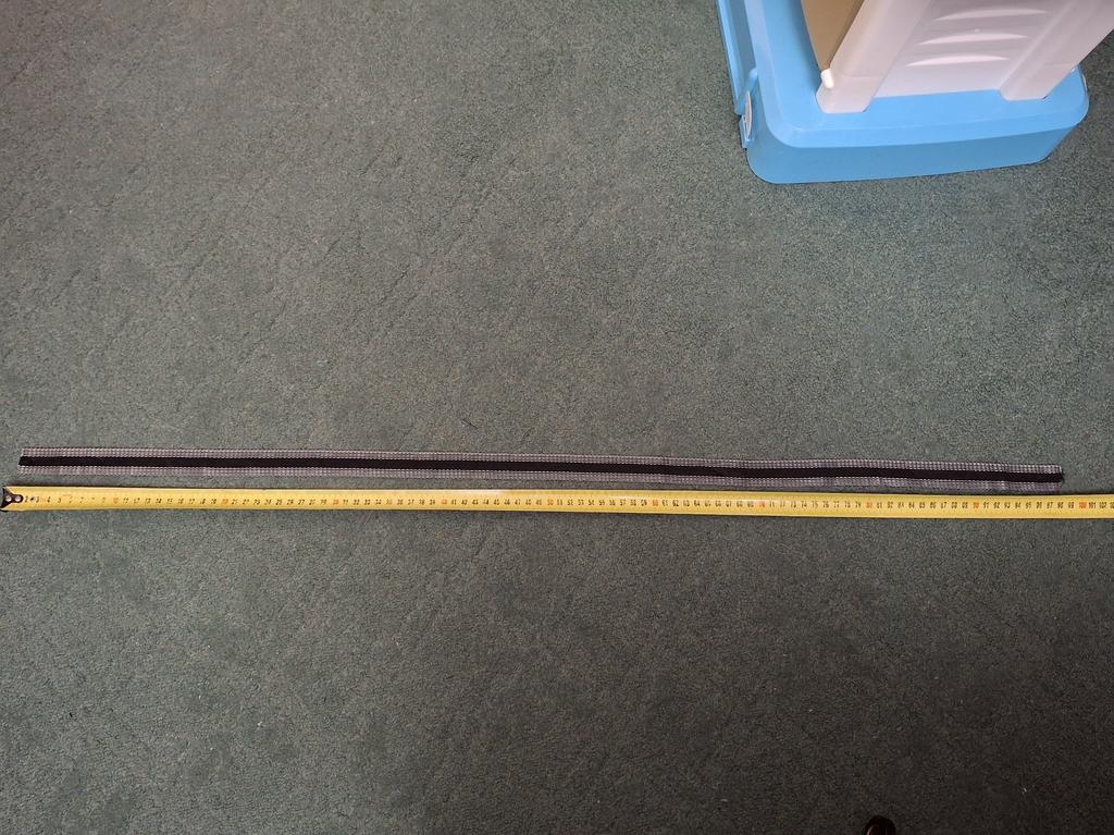 È lungo poco meno di un metro e il bordo curvo è sfilacciato. Non è piacevole.