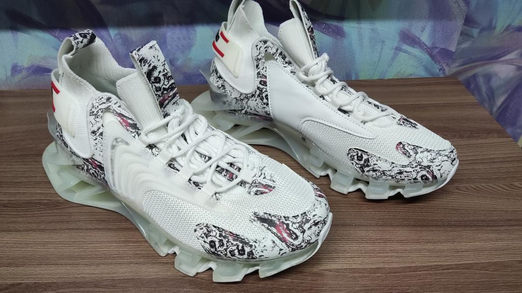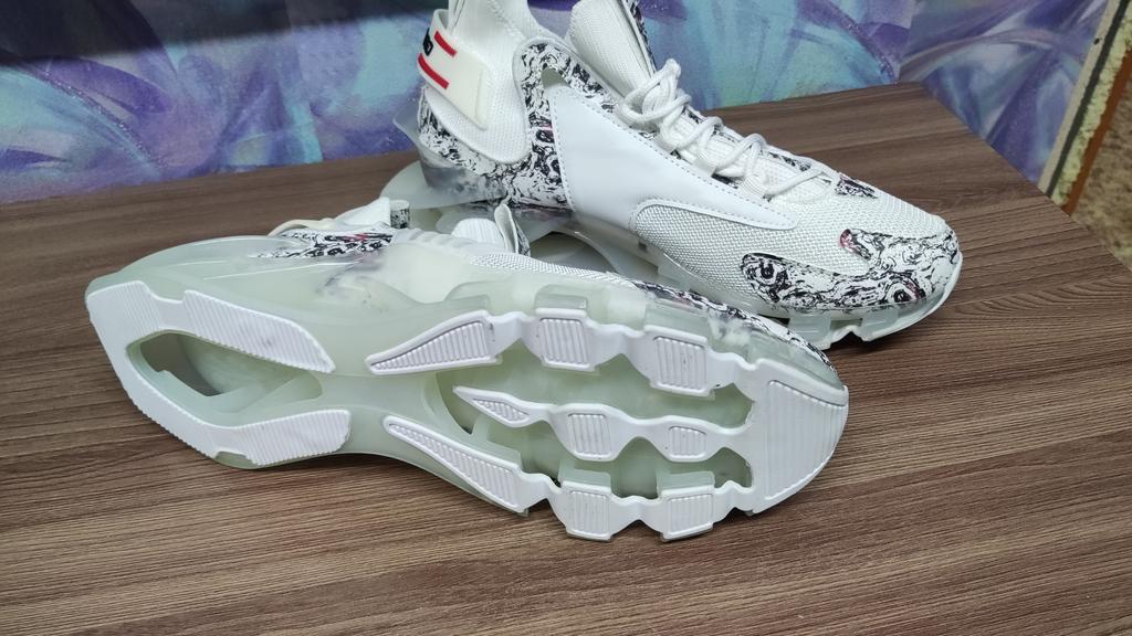 Non c'è luce blu, le suole sono in gomma trasparente e non ti permettono di camminare tranquillamente in pubblico senza sentirti deriso, le suole sono molto più leggere della foto, quindi il materiale è molto debole.