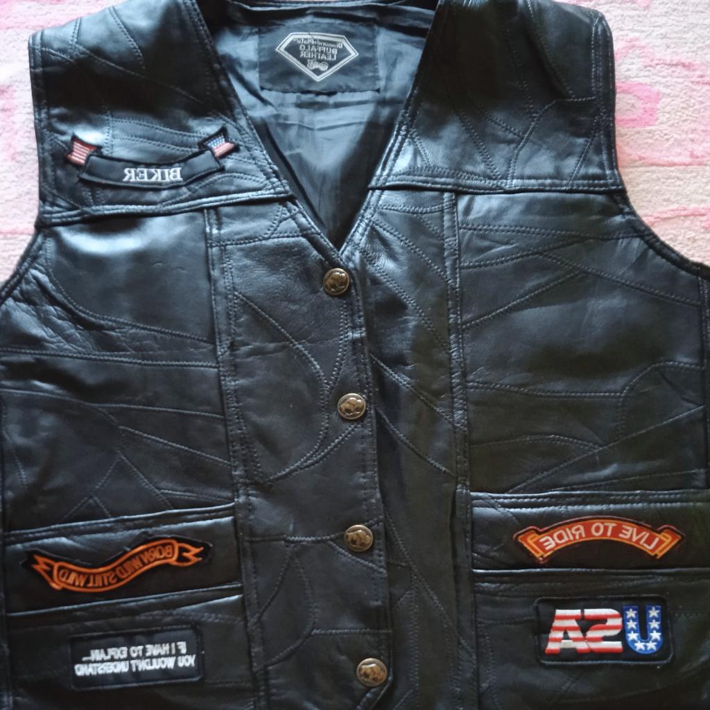 Di solito indosso una XL ma questa veste piccola, sarebbe meglio una taglia in più e contrariamente a quanto indicato non è in pelle, ma è superba