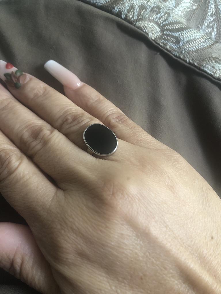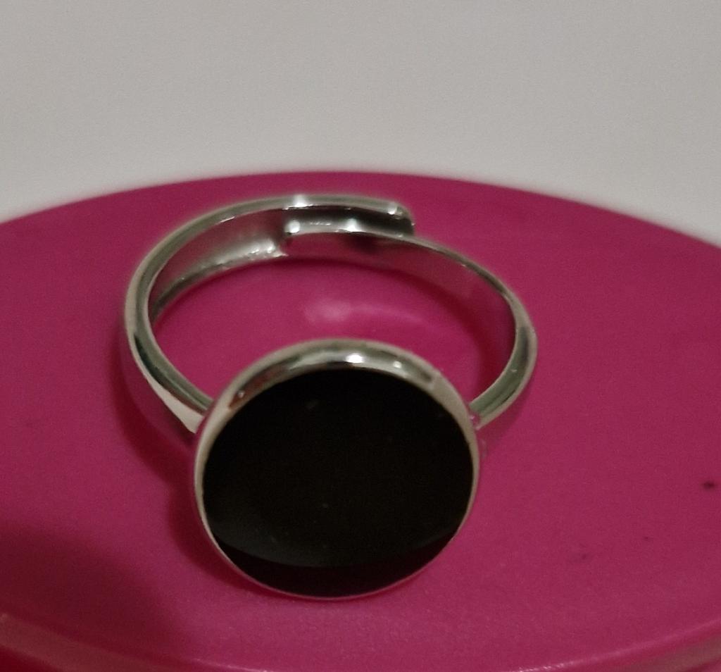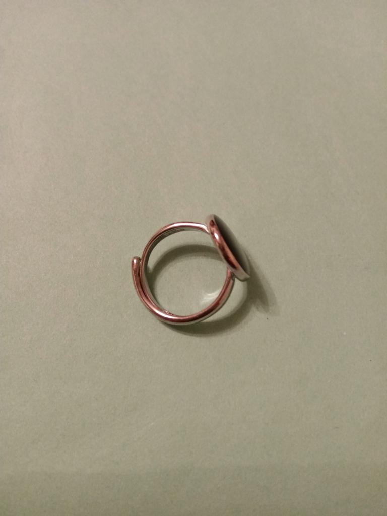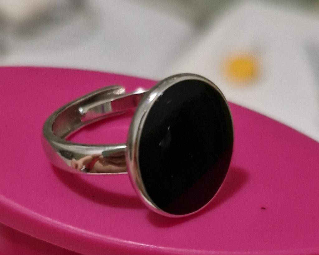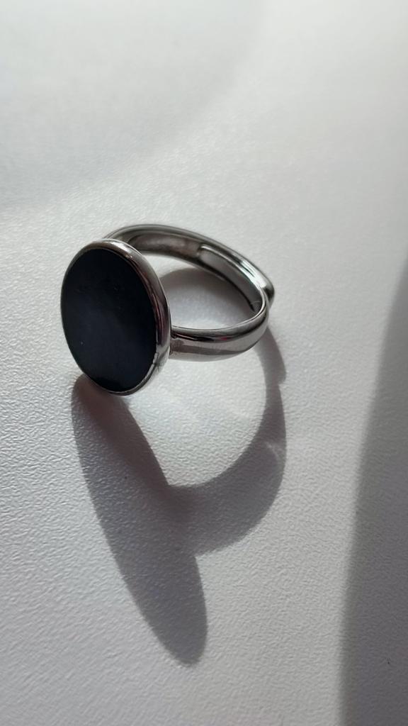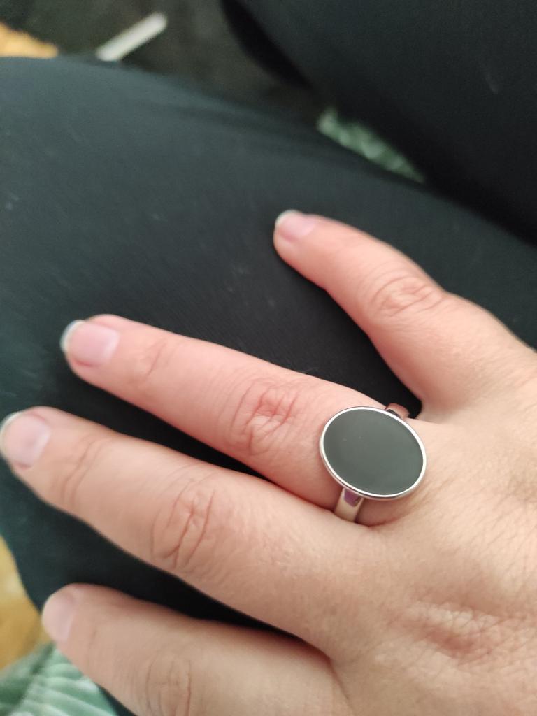 Interessante anello con smalto nero. La dimensione è regolabile. Carino. Mi raccomando ❤️