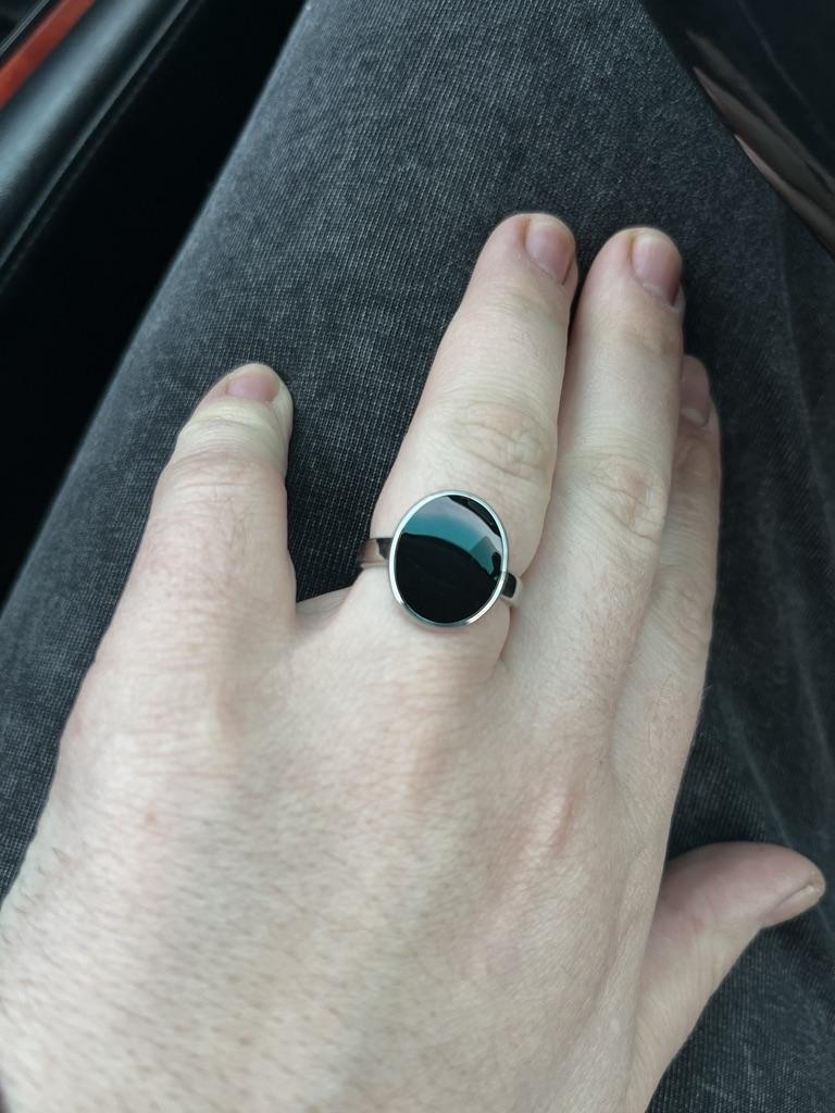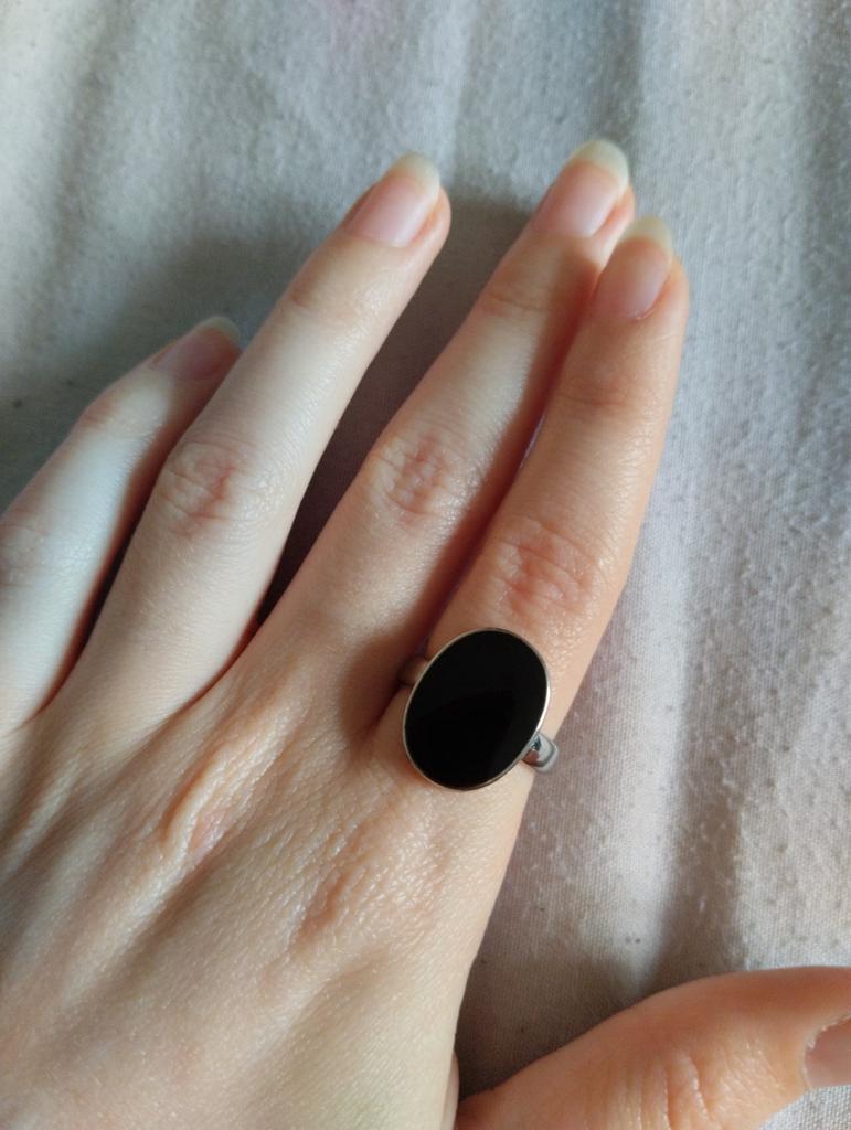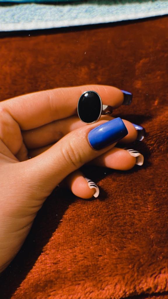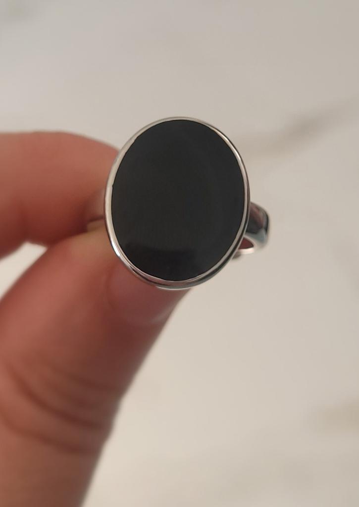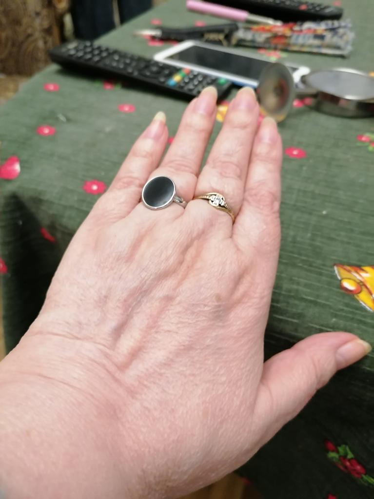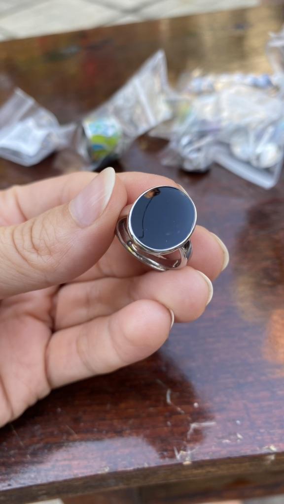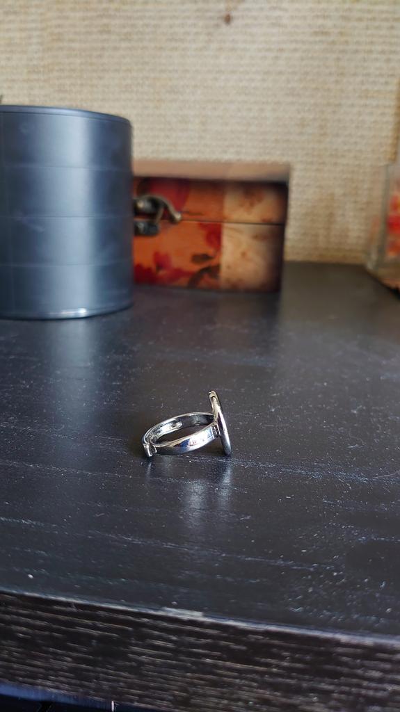 Interessante anello con smalto nero. La dimensione è regolabile. Carino. Mi raccomando ❤️