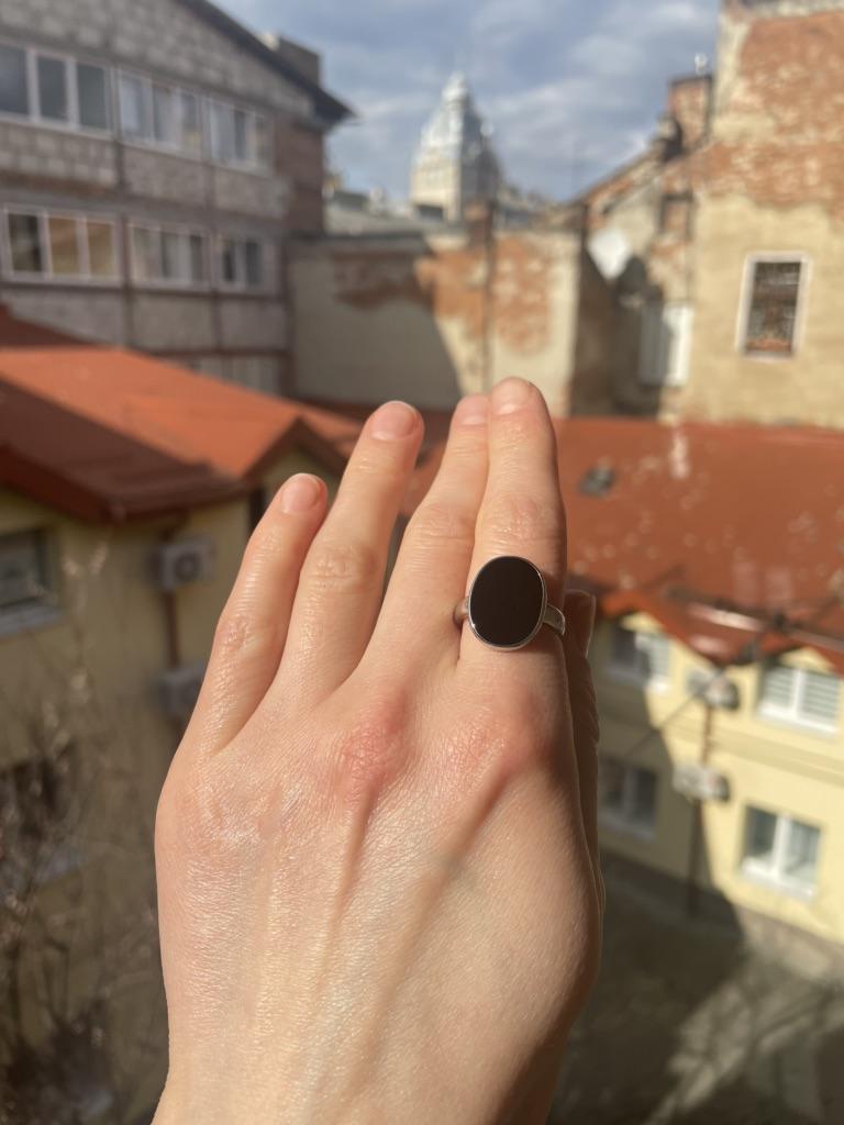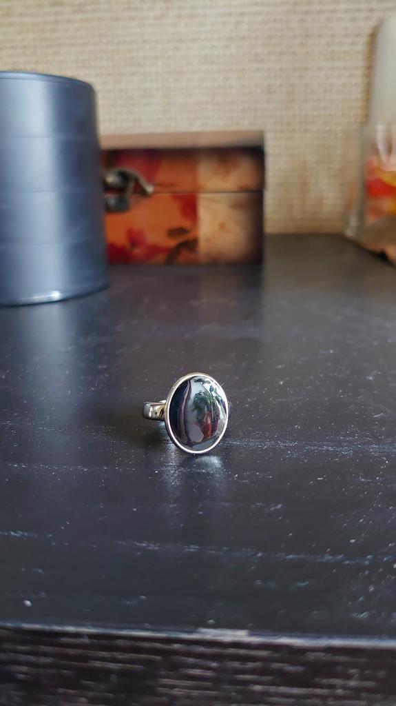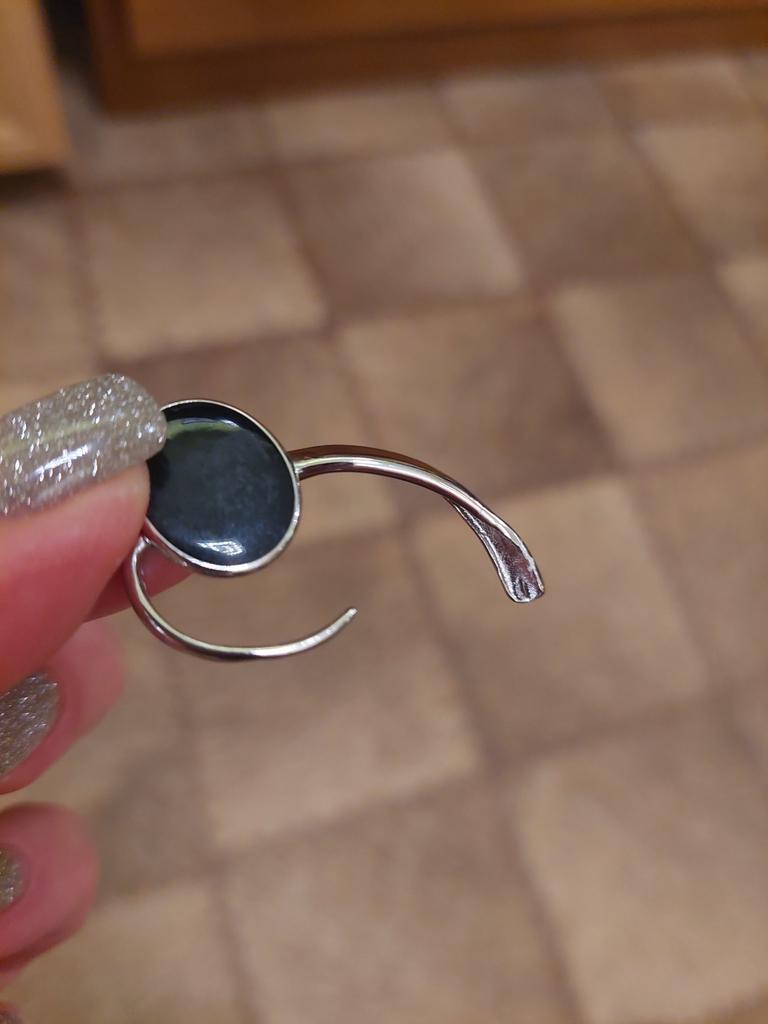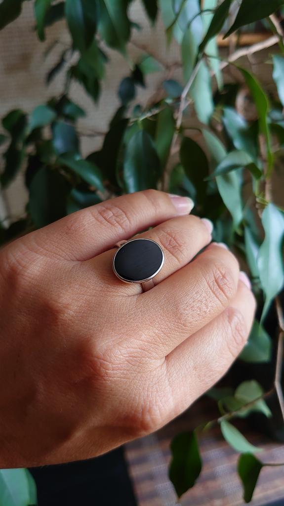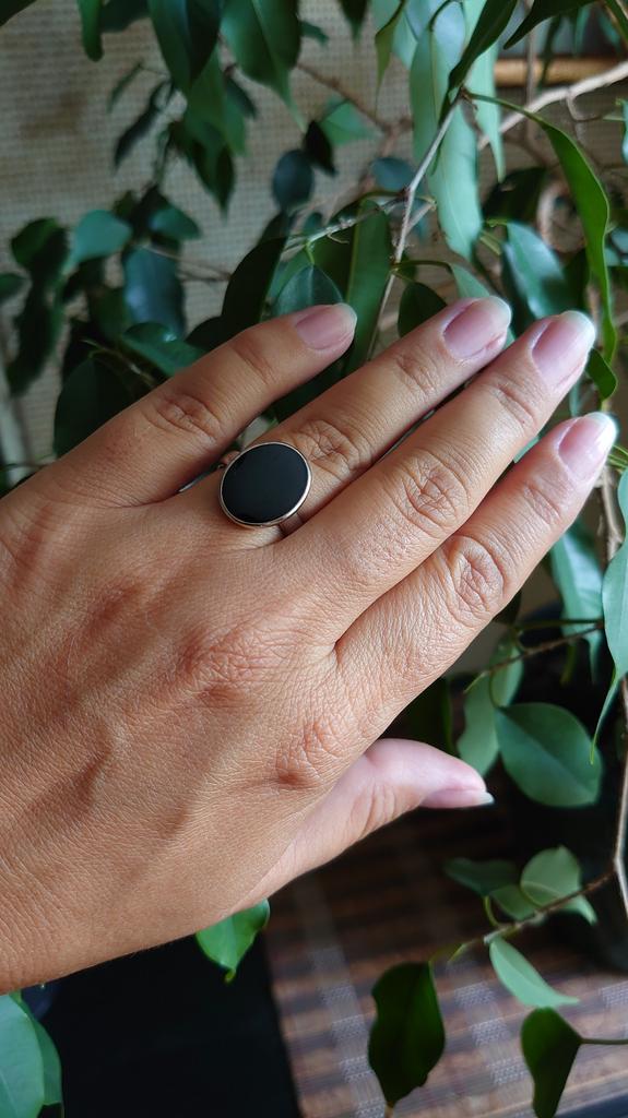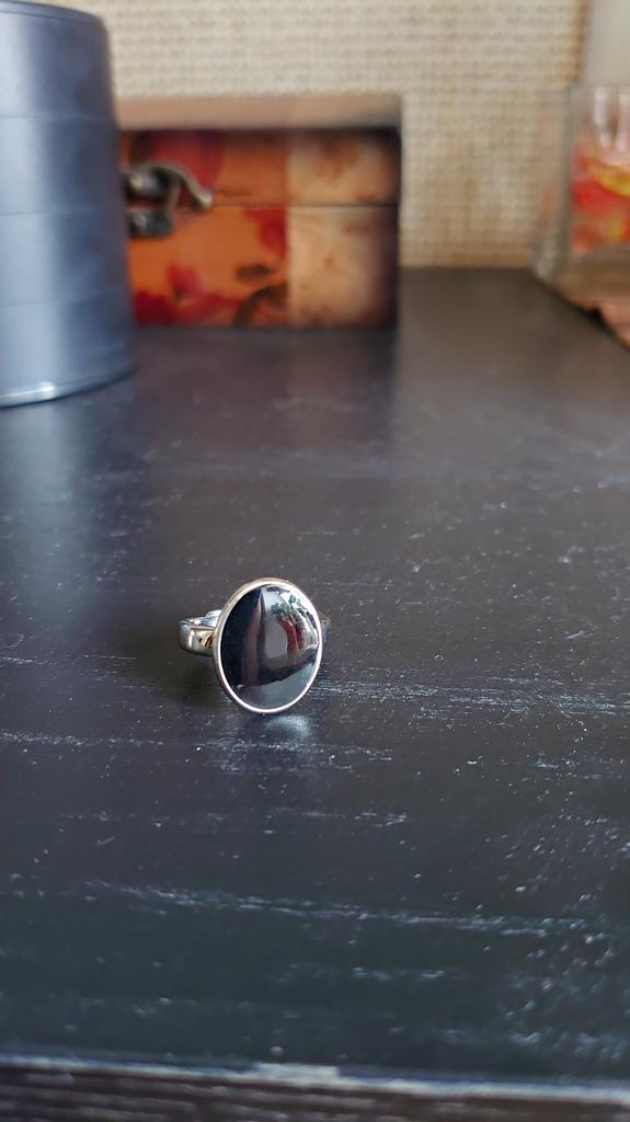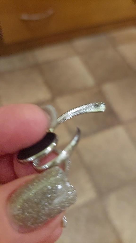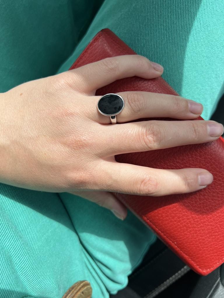 Interessante anello con smalto nero. La dimensione è regolabile. Carino. Mi raccomando ❤️