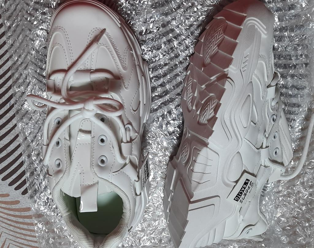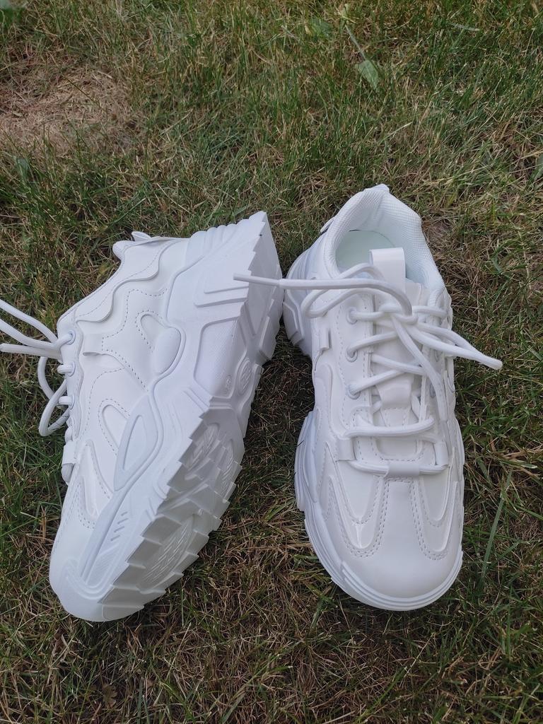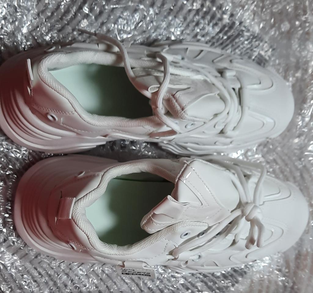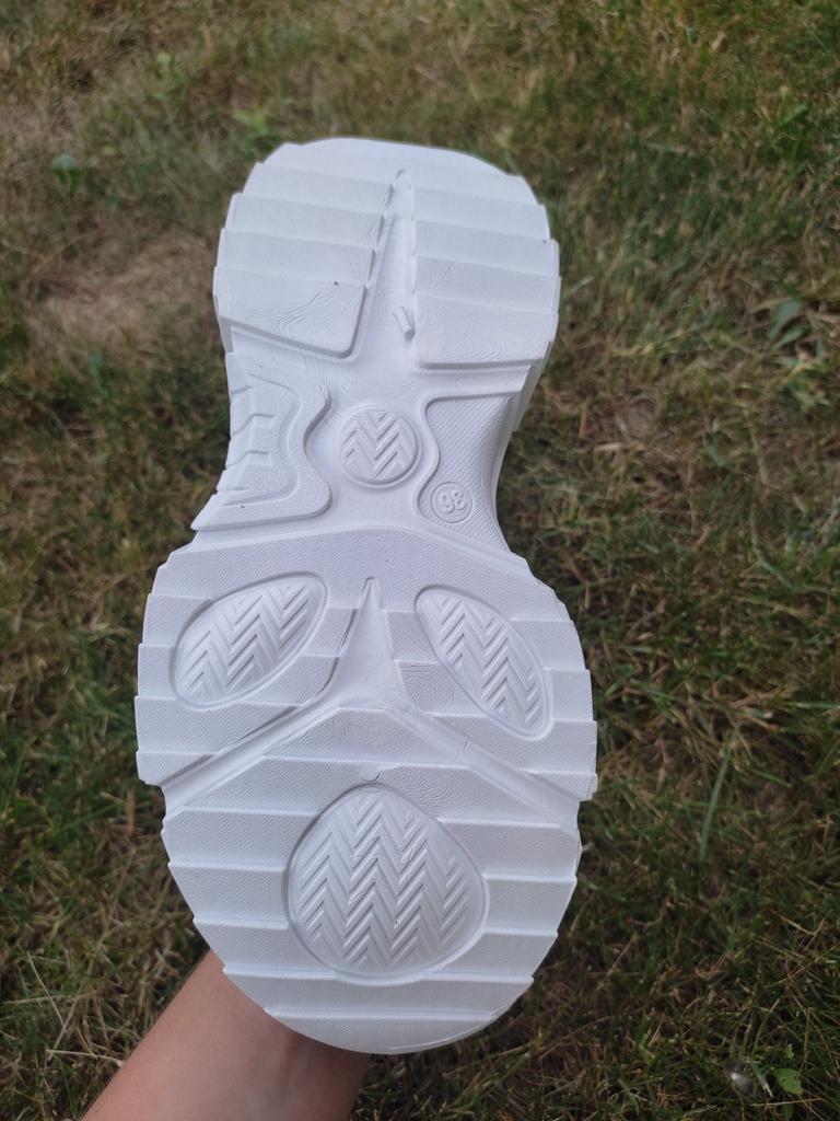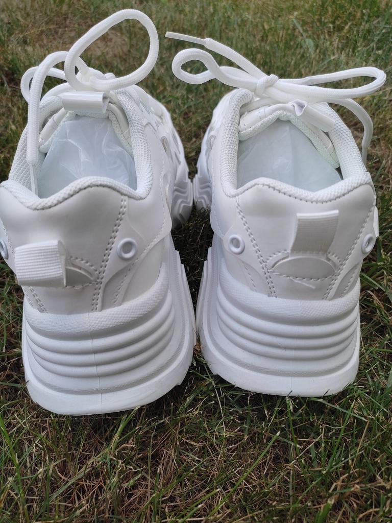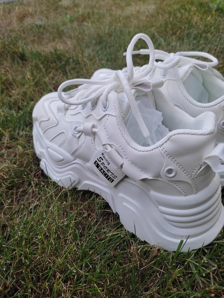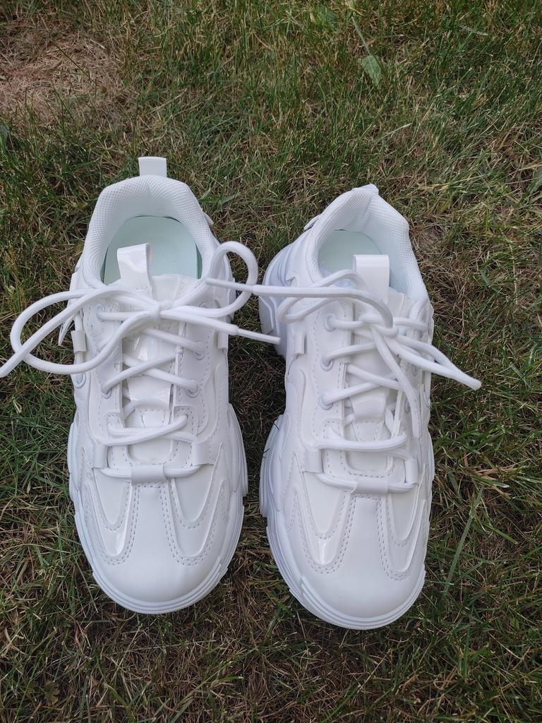 Scarpe da ginnastica bianche come la neve. Il venditore ha queste scarpe da ginnastica in tre colori. Ho preso la taglia 36 per la mia 36. Quindi posso tranquillamente affermare che la griglia delle taglie corrisponde alla descrizione del venditore 👍 Si adatta a una gamba larga. Le scarpe da ginnastica sono comode e non sfregano ♥️ Hanno una piattaforma alta e mi piace. Se sei basso, queste scarpe da ginnastica ti renderanno più alto . Queste sneakers sono adatte per la primavera fredda e l'autunno. Il venditore l'ha imballato in modo sicuro, ha inserito degli inserti rigidi all'interno delle scarpe in modo che le scarpe non si deformassero durante la consegna. Sembrano eleganti e belli 🙂