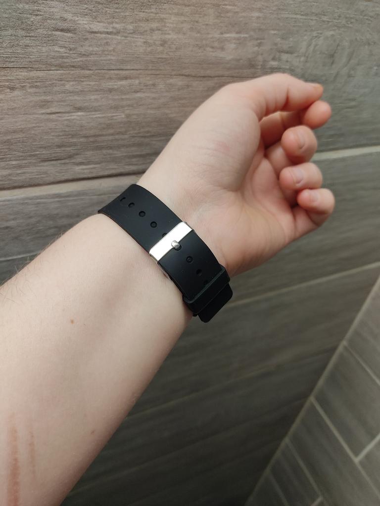 Tempi molto buoni, cinturino in caucciù, molto morbido, piacevole al corpo Per un prezzo così, tempi fantastici