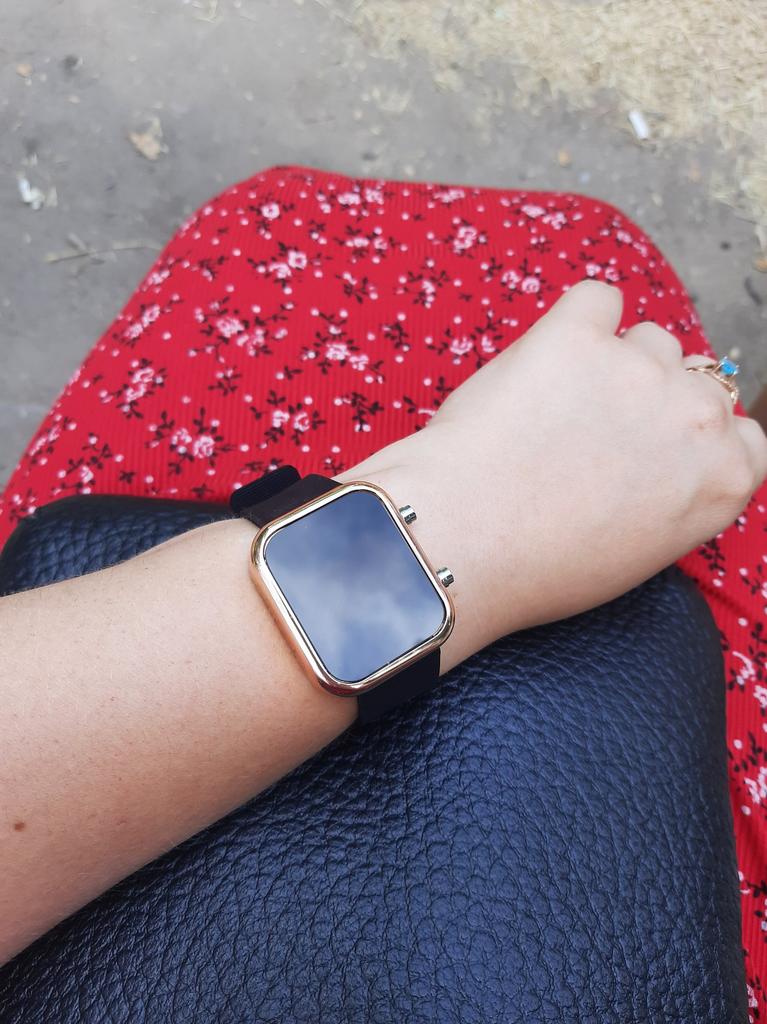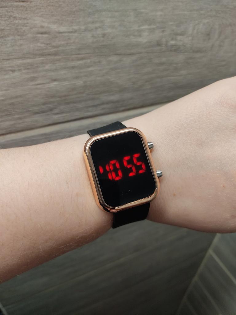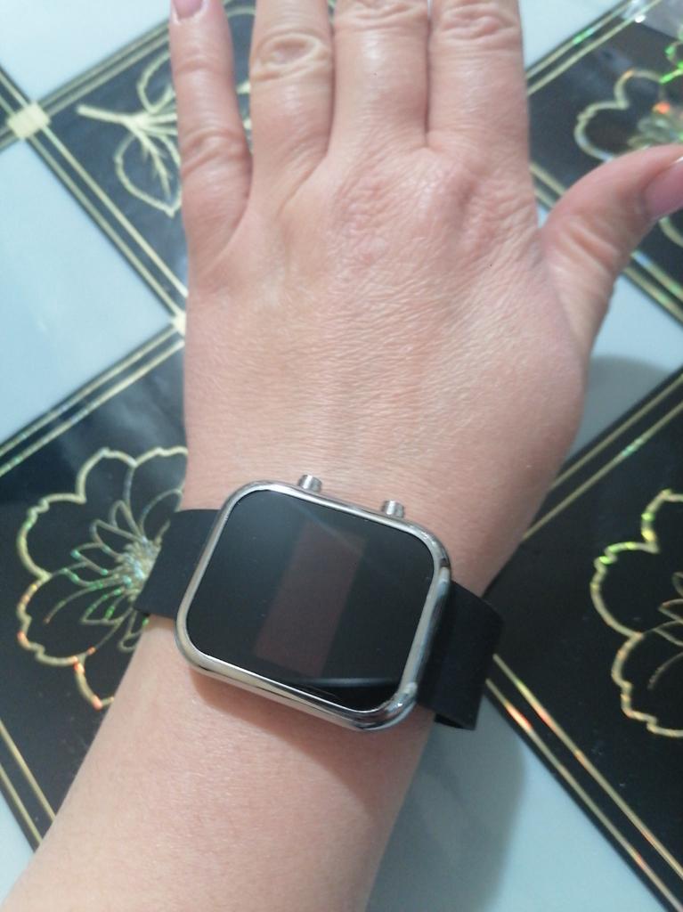 Orologio con quadrante digitale. Funzionano normalmente, l'ora viene visualizzata quando si preme un pulsante, conveniente. Il cinturino è morbido, in silicone, confortevole. Io raccomando.