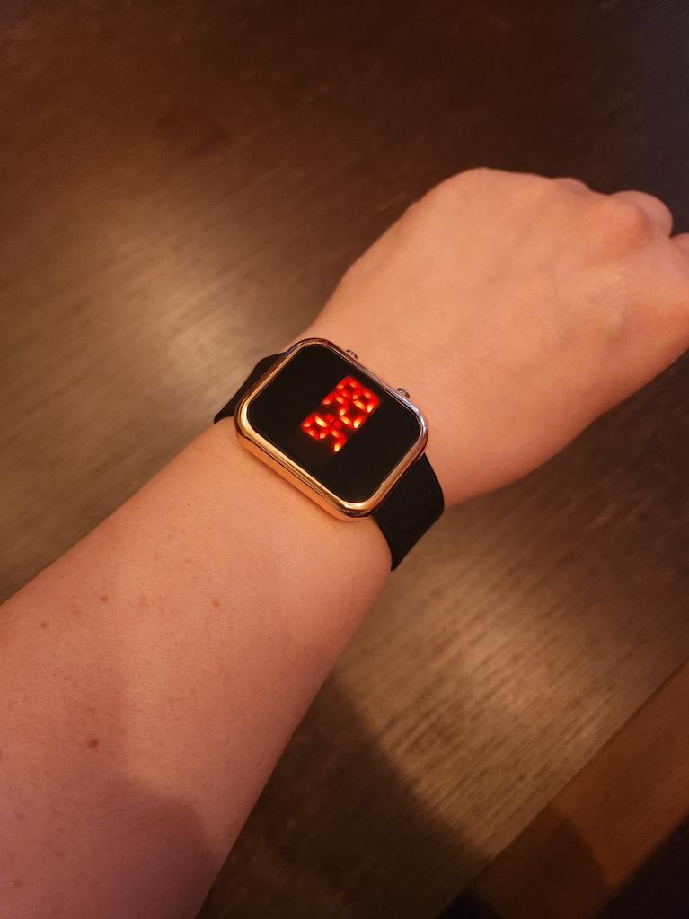Orologio elettronico facile da usare, molto facile e veloce da configurare, si adatta bene alla mano, cinturino in silicone comodo, mi piace molto che il quadrante si illumini, è comodo, non so quanto durerà, ma sono soddisfatto di questo orologio👍🤗
