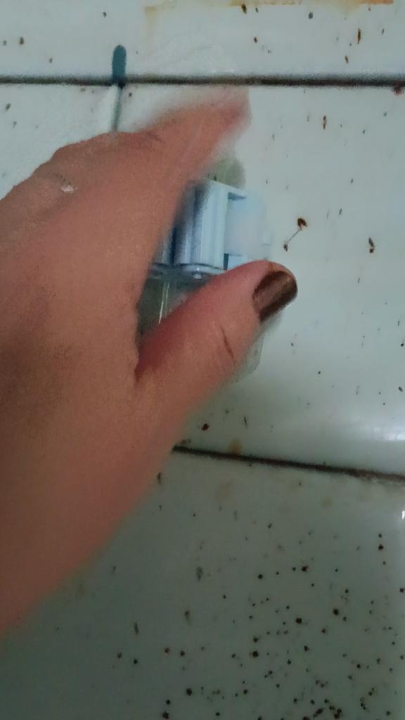 si è attaccato alle piastrelle in bagno. tiene il manico del mocio
