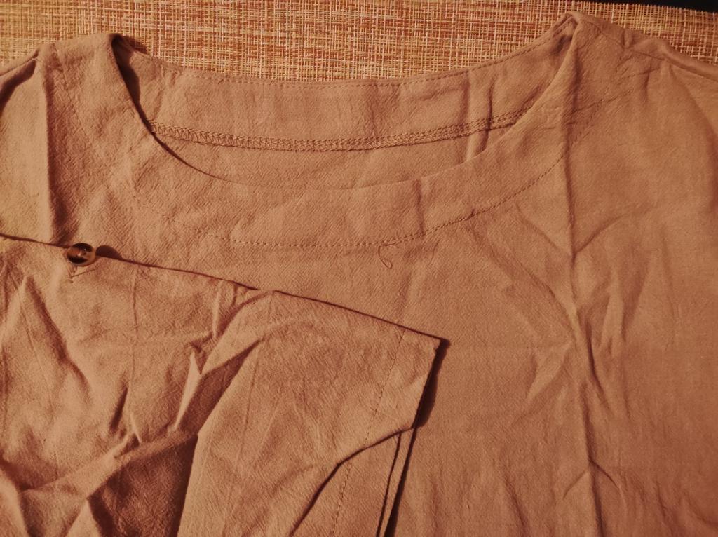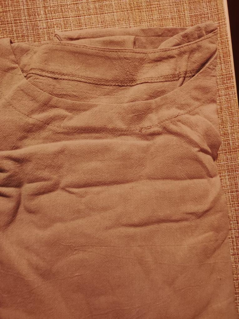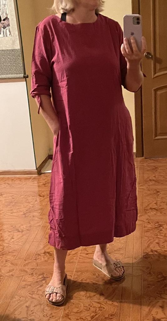 Abito per il mio 46 in utyag (non come sul modello), veste piccolo! Anche se il materiale è morbido, cotone + lino!