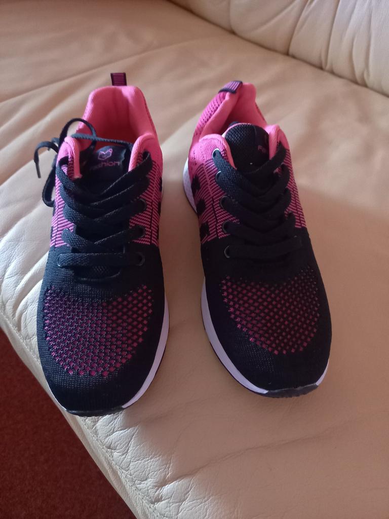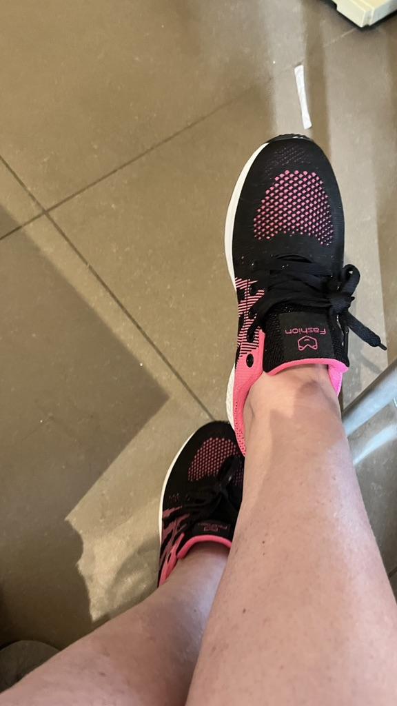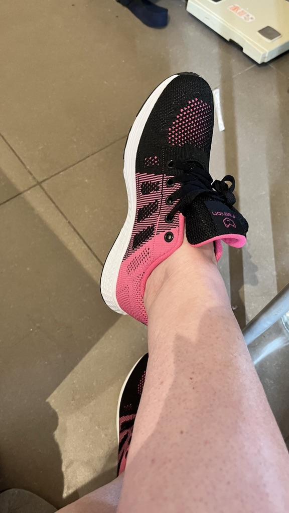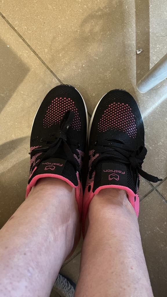 Le scarpe da ginnastica si adattano perfettamente, ho preso 41 per la mia taglia 40.5 Molto comode, sembrano pulite sulla gamba.