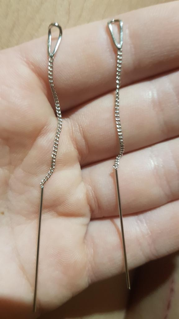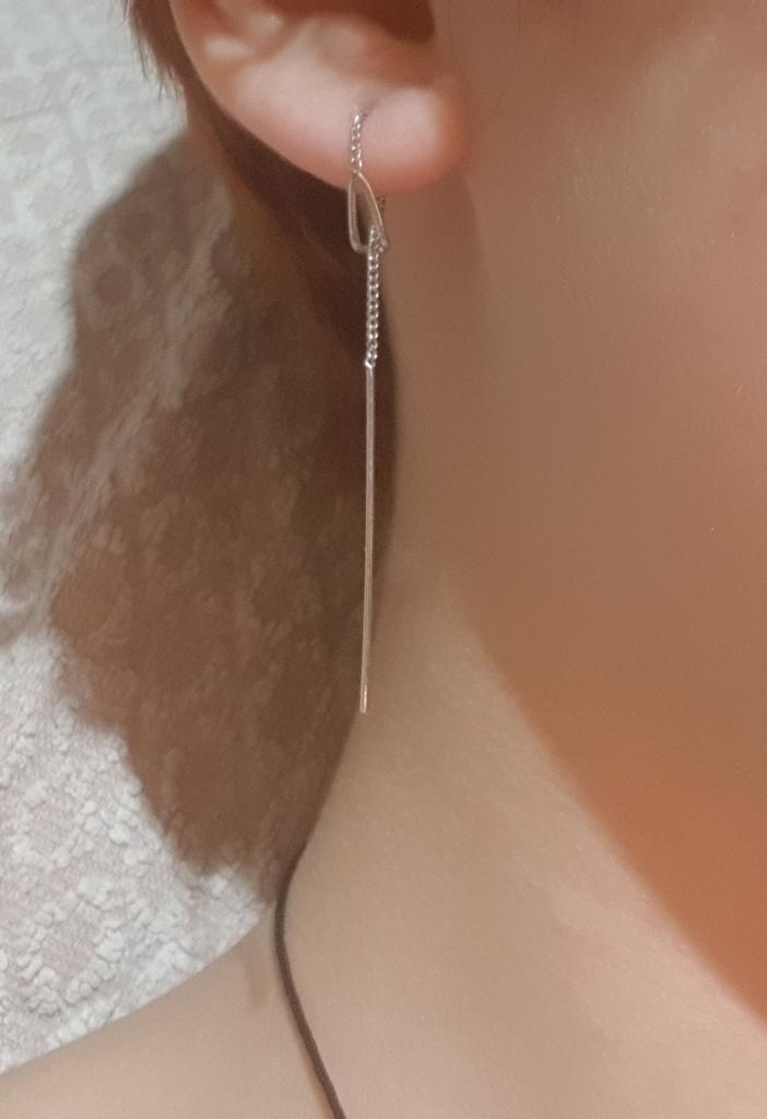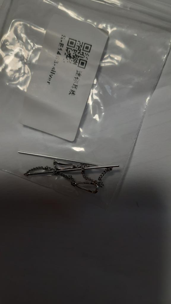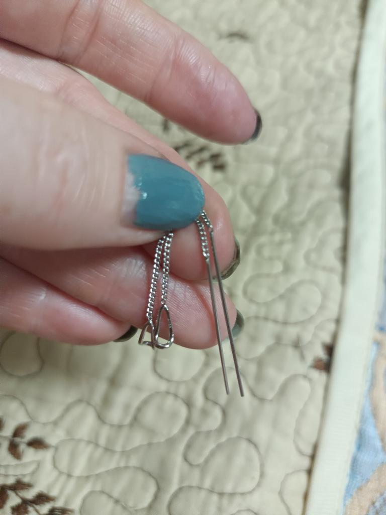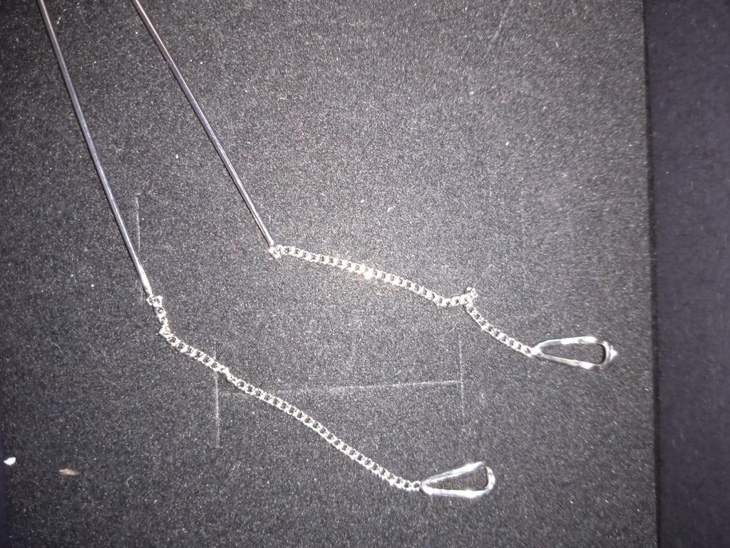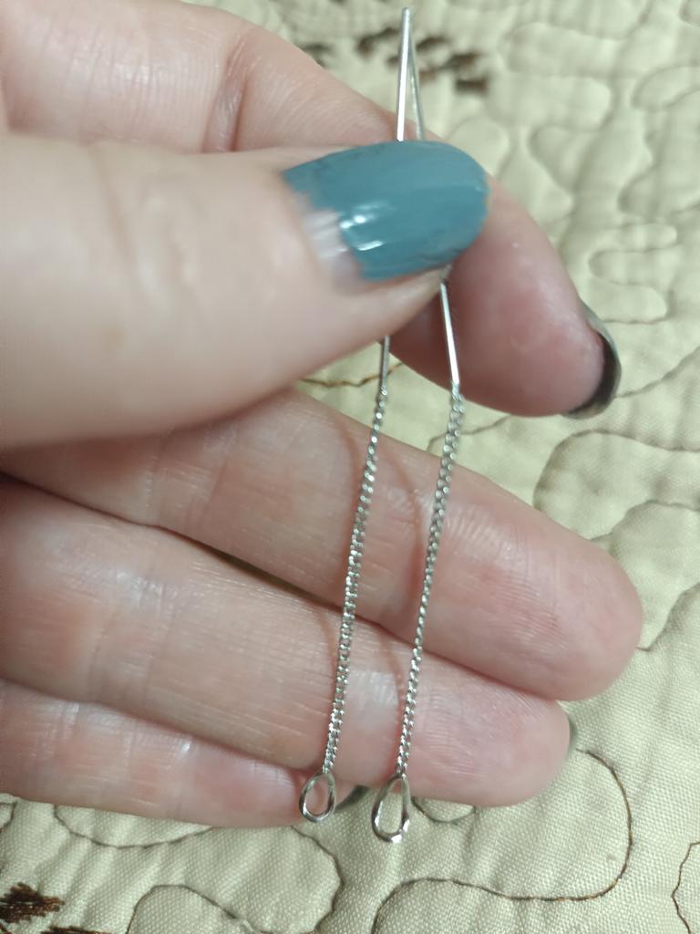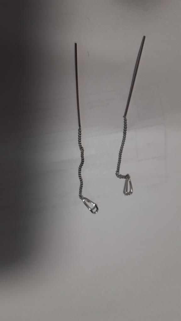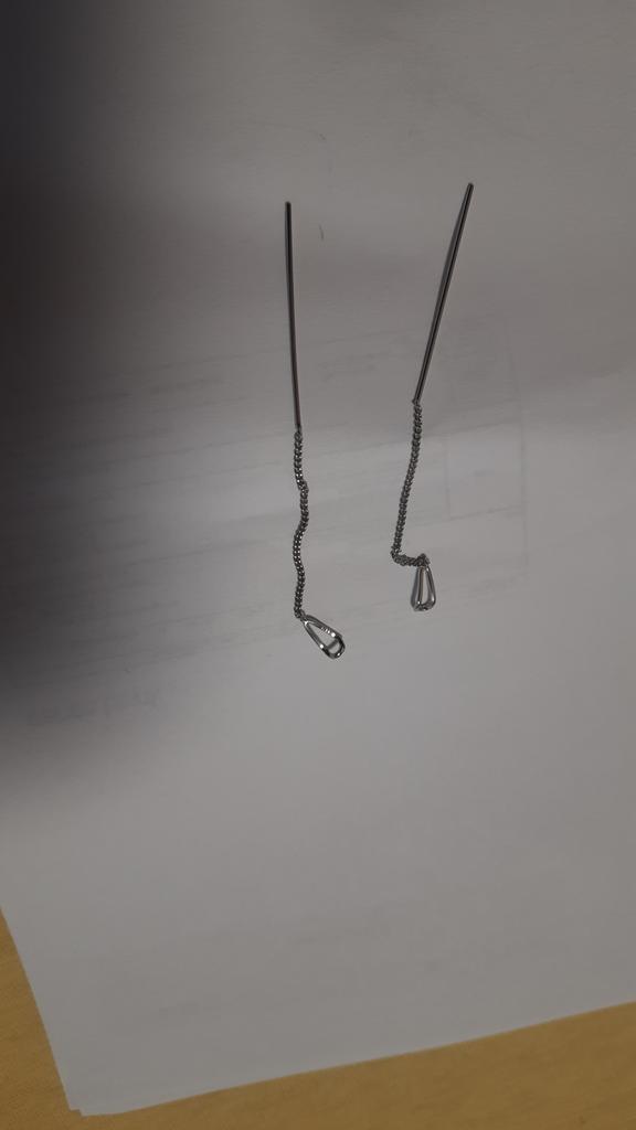 Un orecchino è difettoso. La catenina è piegata in due punti. Ordino per la seconda volta, la prima volta c'erano i fermi in silicone, questa volta no. Ho buttato via i soldi.