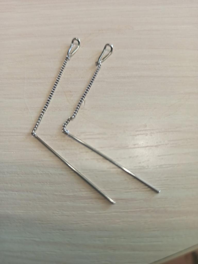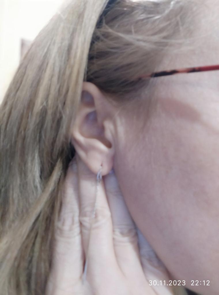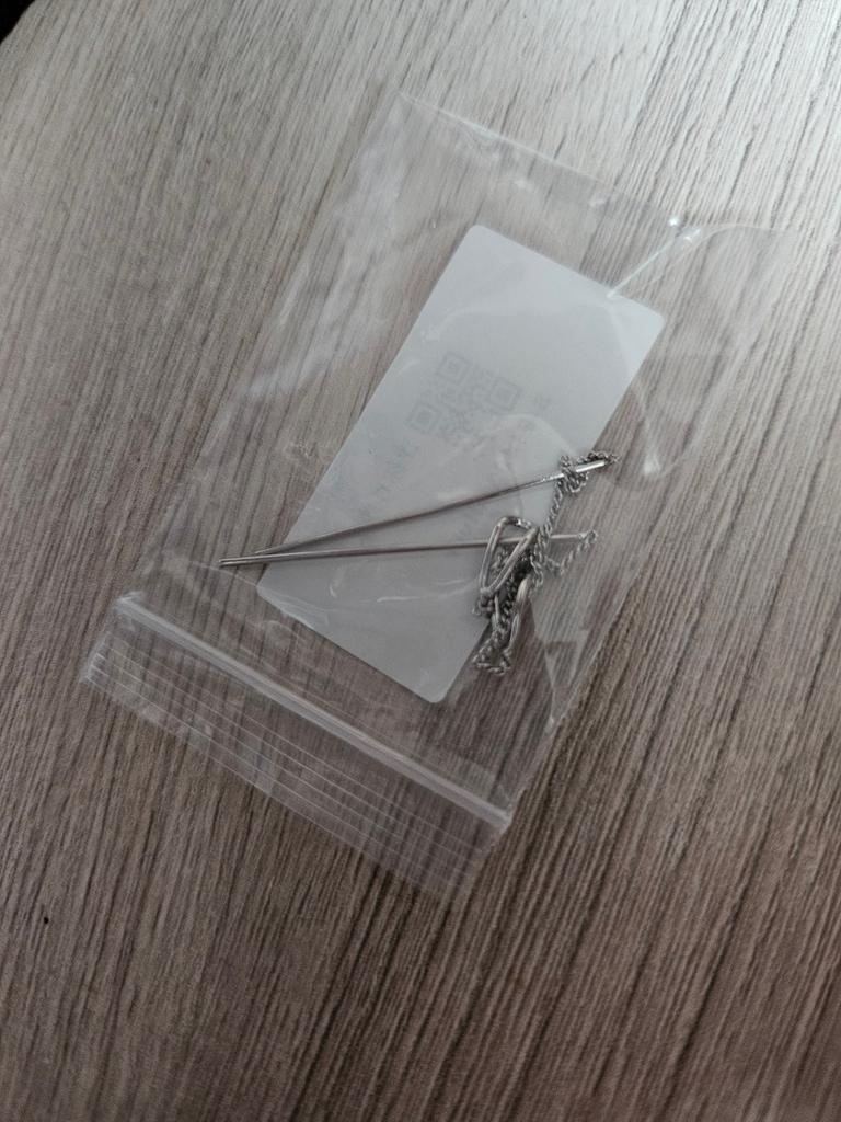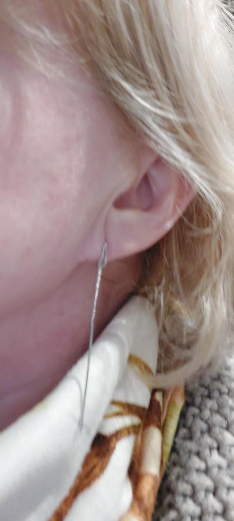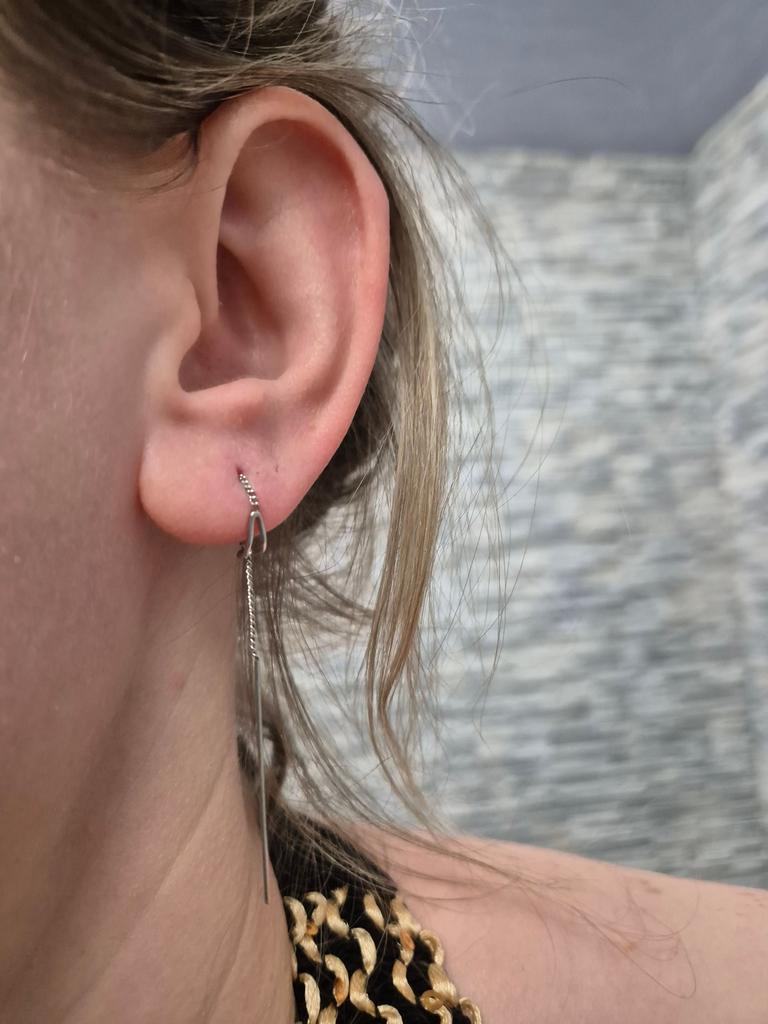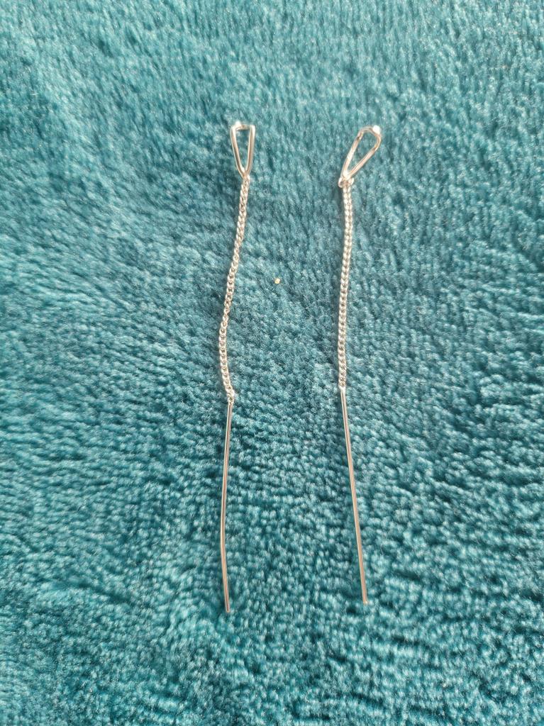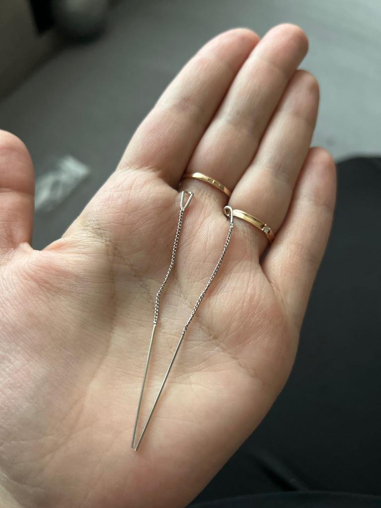 Un orecchino è difettoso. La catenina è piegata in due punti. Ordino per la seconda volta, la prima volta c'erano i fermi in silicone, questa volta no. Ho buttato via i soldi.