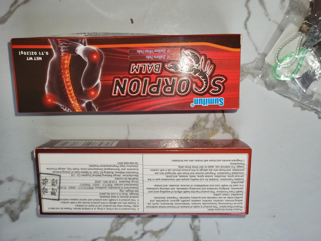 2022 Nuovo Design Veleno di Scorpione Sollievo Dal Dolore Unguento Ginocchio Articolazione della Schiena Muscolare Crema di Sollievo Dal Dolore 20g Unguento molto buono, mi ha aiutato e il dolore è diminuito.