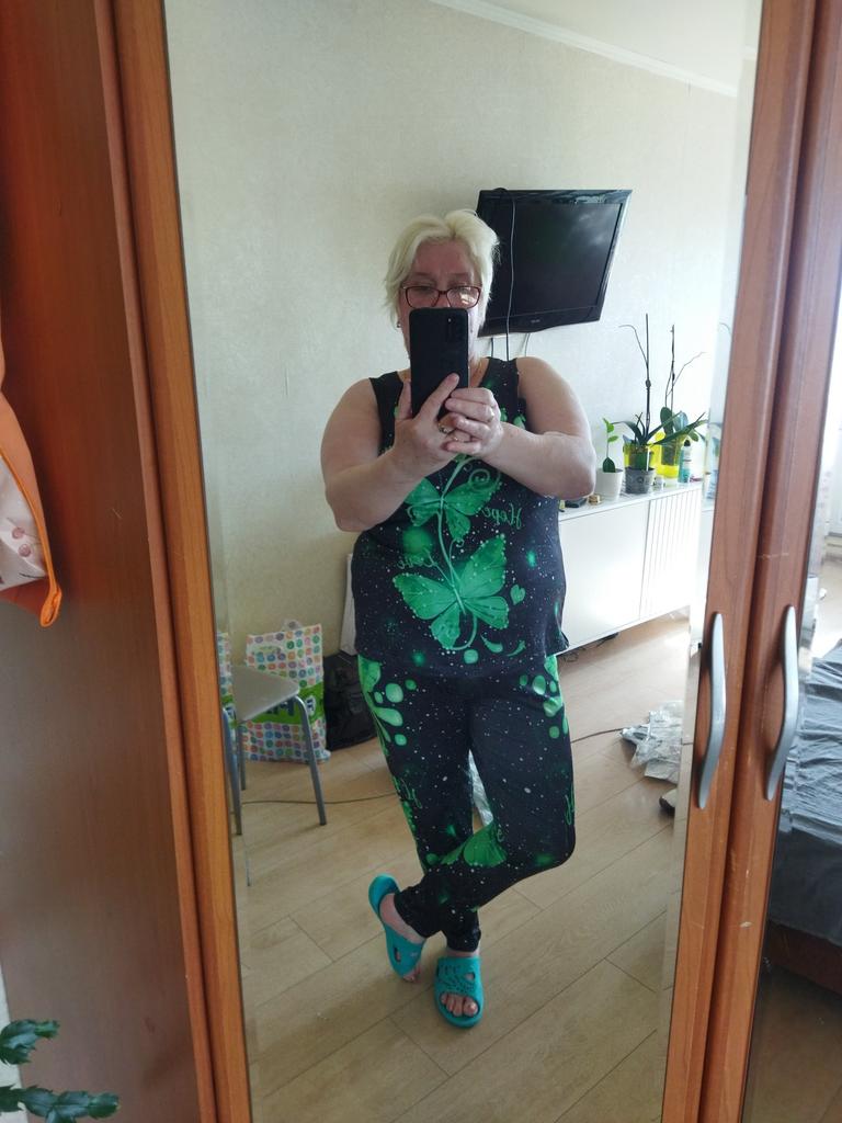 Il costume è bello, luminoso, sintetico, ma piacevole per il corpo. Non avevo indovinato con la taglia. Si è rivelato troppo grande per il suo 52-54. E ancora una cosa, gli scalfi sono troppo grandi. Non tornerò. Nel collo nelle spalle e pantaloni affusolati