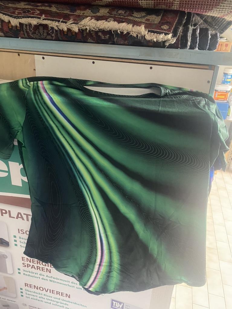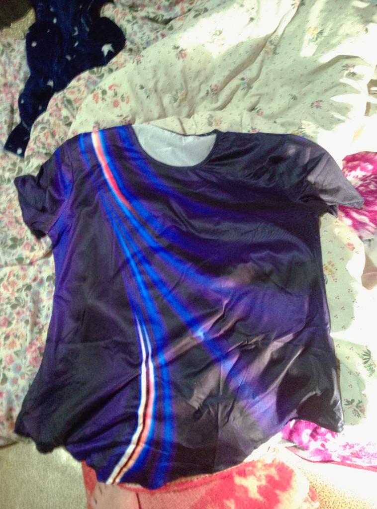 La maglietta è allungata. Il colore non è lo stesso della descrizione