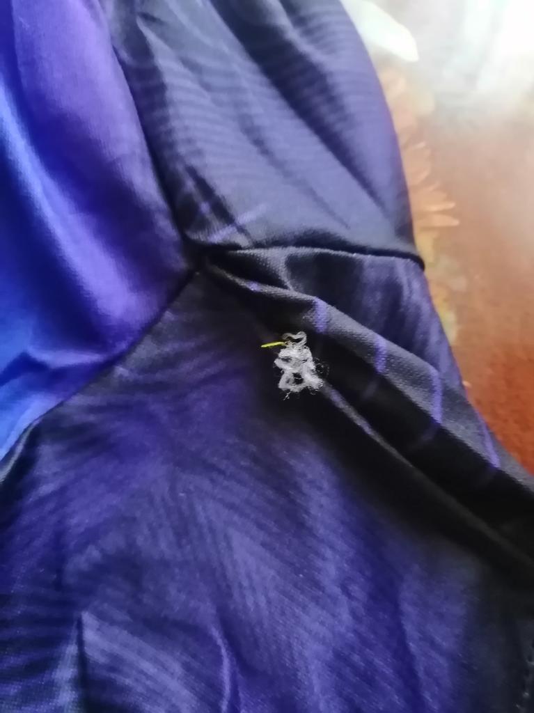 I fili sporgono, le cuciture non sono cucite in modo uniforme e la composizione del tessuto non è molto buona,