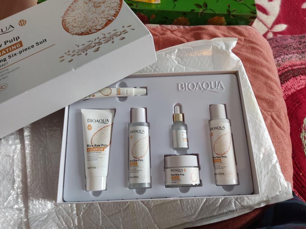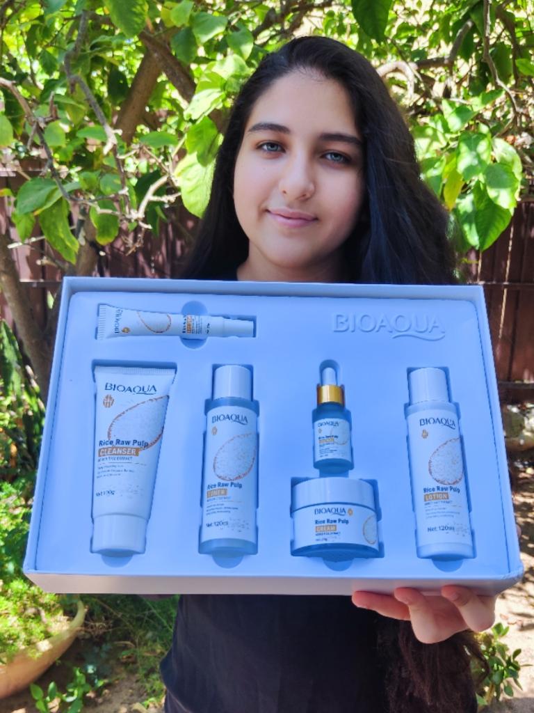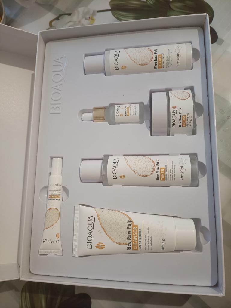 🛍️Set per la cura della pelle - 6 pezzi🛍️ Valutazione: ⭐⭐⭐⭐⭐ ✨Questo kit sembra così bello e i prodotti per la cura in esso contenuti sono progettati magnificamente con un aspetto sorprendente e lussuoso con immagini di riso e mi piace molto. ✨ All'interno della confezione trovi: 6 prodotti per la cura della pelle, ognuno dei quali ha un uso diverso: *Detergente per purea di riso - 100 grammi *Toner per purea di riso - 120 grammi *Estratto di riso - 15 ml *Emulsione di polpa di riso - 120 ml * Crema per gli occhi di purea di riso - 20 grammi * Crema di riso al latte crudo - 50 grammi ✨Contengono una varietà di ingredienti per la cura della pelle e in particolare il riso che è leggero e morbido, idrata e protegge la pelle e la rende umida e lucente. ✨Hanno l'effetto di: antietà, pulizia, idratazione, nutrimento, controllo dell'olio, restringimento dei pori, sbiancamento. ✨Questo prodotto è così straordinario e viene fornito in una confezione perfetta e può essere usato come un buon regalo🎁 ✨Il kit di cura è arrivato protetto in una bella confezione. ✨Il prodotto mi ha raggiunto in circa 41 giorni. ✨Grazie mille a Perfect Skin per avermi inviato il pacco! Altamente consigliato per l'acquisto🛍️