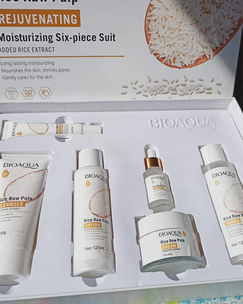 BIOAOUA Purea di Riso Ringiovanente e Idratante Set di sei prodotti idratanti per la cura della pelle