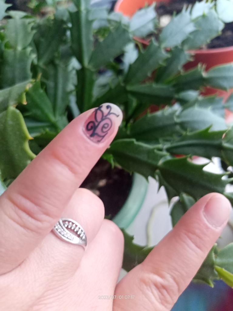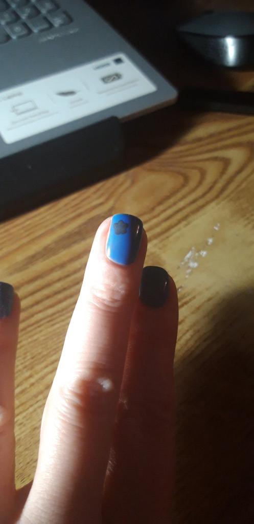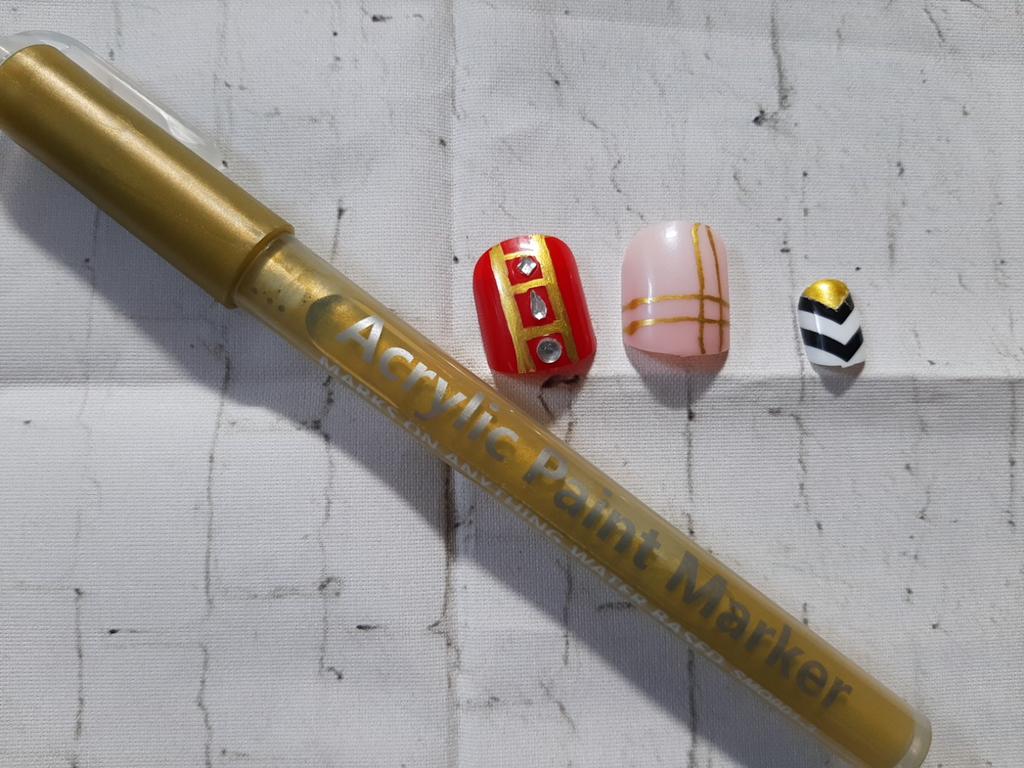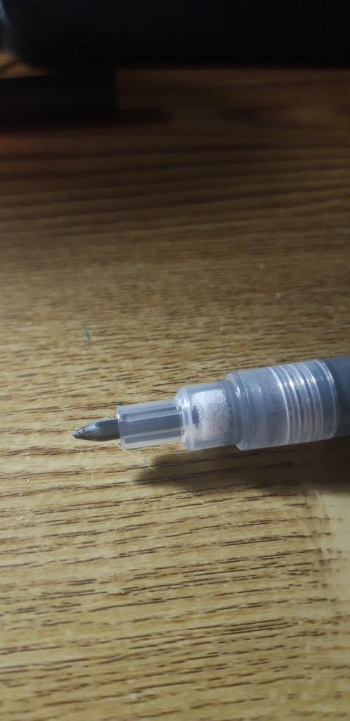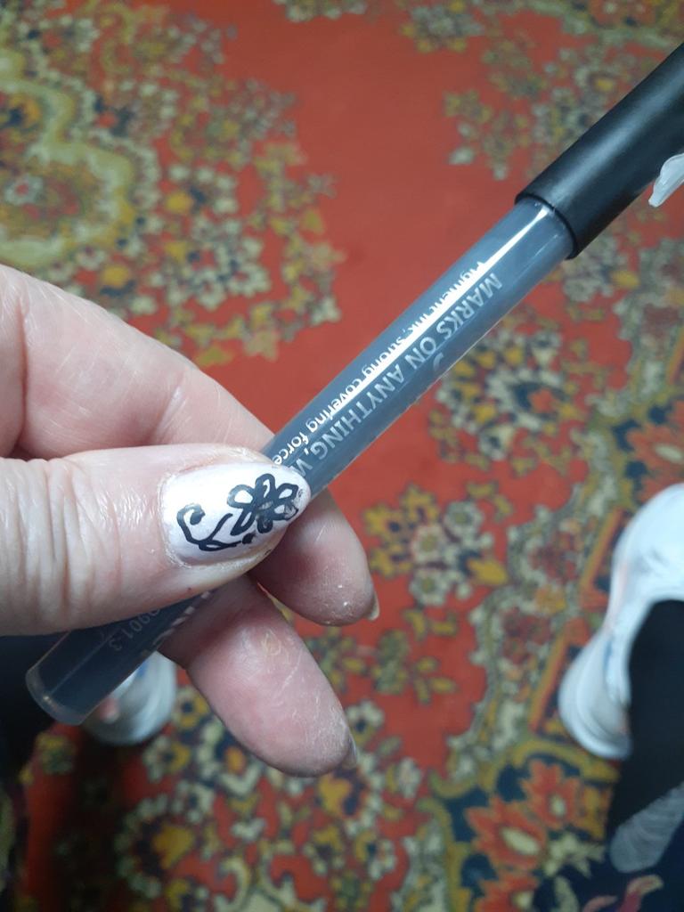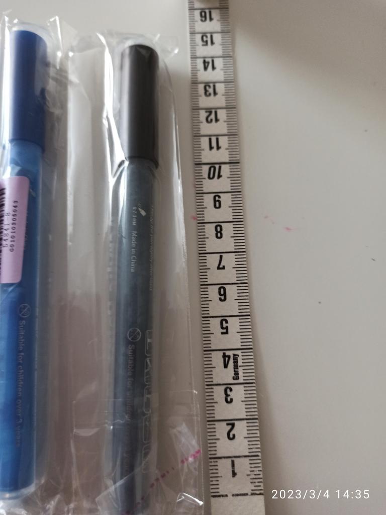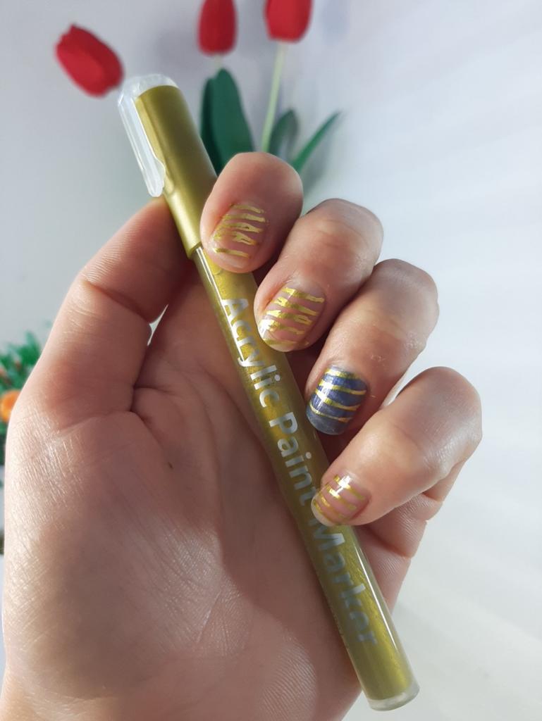 La penna è bella e voluminosa, pensavo fosse più piccola. Il colore è più grigiastro che nero, ma forse sembra così sullo smalto blu. Con lo smalto in gel si asciugava rapidamente, ma altrettanto rapidamente svaniva. Penso che sia necessario coprirlo con un top coat o con uno trasparente se la vernice è normale. Per il resto è fantastico.