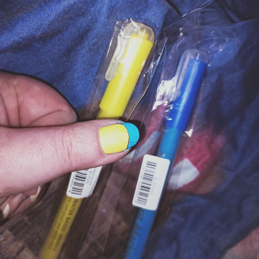 ❤️👋 Salve gente di Joom! Oggi ho ricevuto questi pennarelli per dipingere le unghie! Abbiamo guidato poco più di un mese nel tempo. Ho preso i colori blu, giallo e nero. Ho dipinto rapidamente blu e giallo sulla foto. Ti consiglio 👍