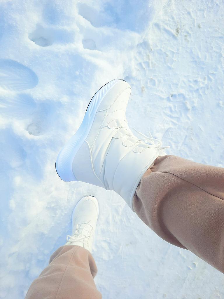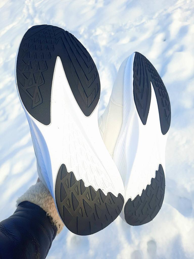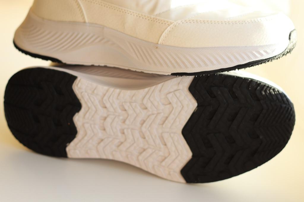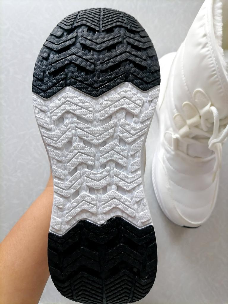 Non bianco puro, la suola è più bianca. C'è un odore. La merce è arrivata rapidamente. Aggiungo. È comodo da camminare e non scivola quando si cammina sulla neve. Ma le piastrelle di alcuni negozi sono scivolose. Caldo, a meno 10-15, per niente freddo.