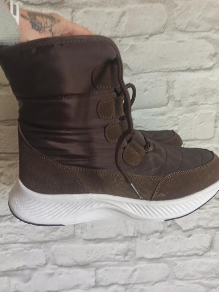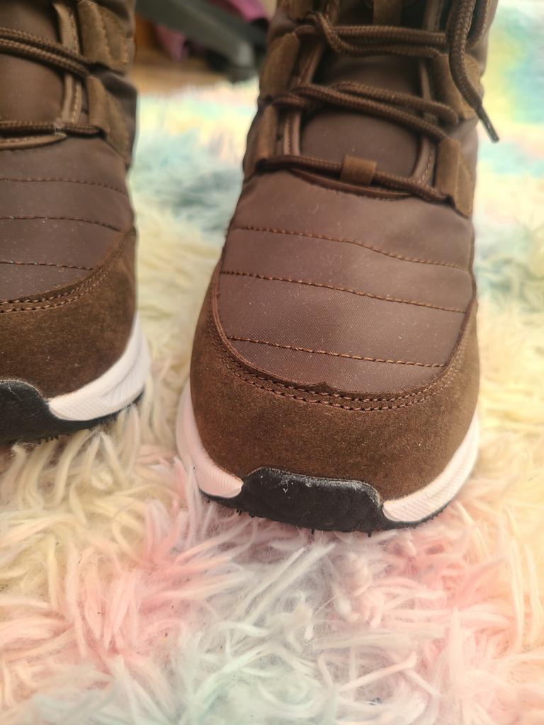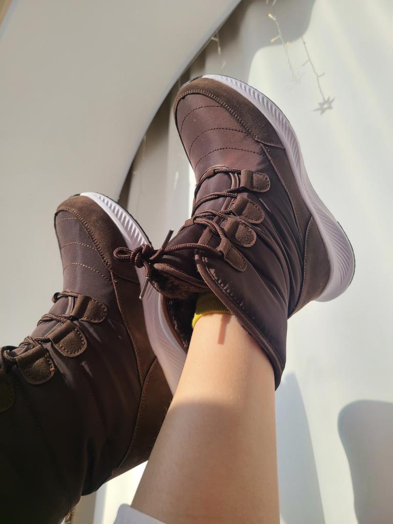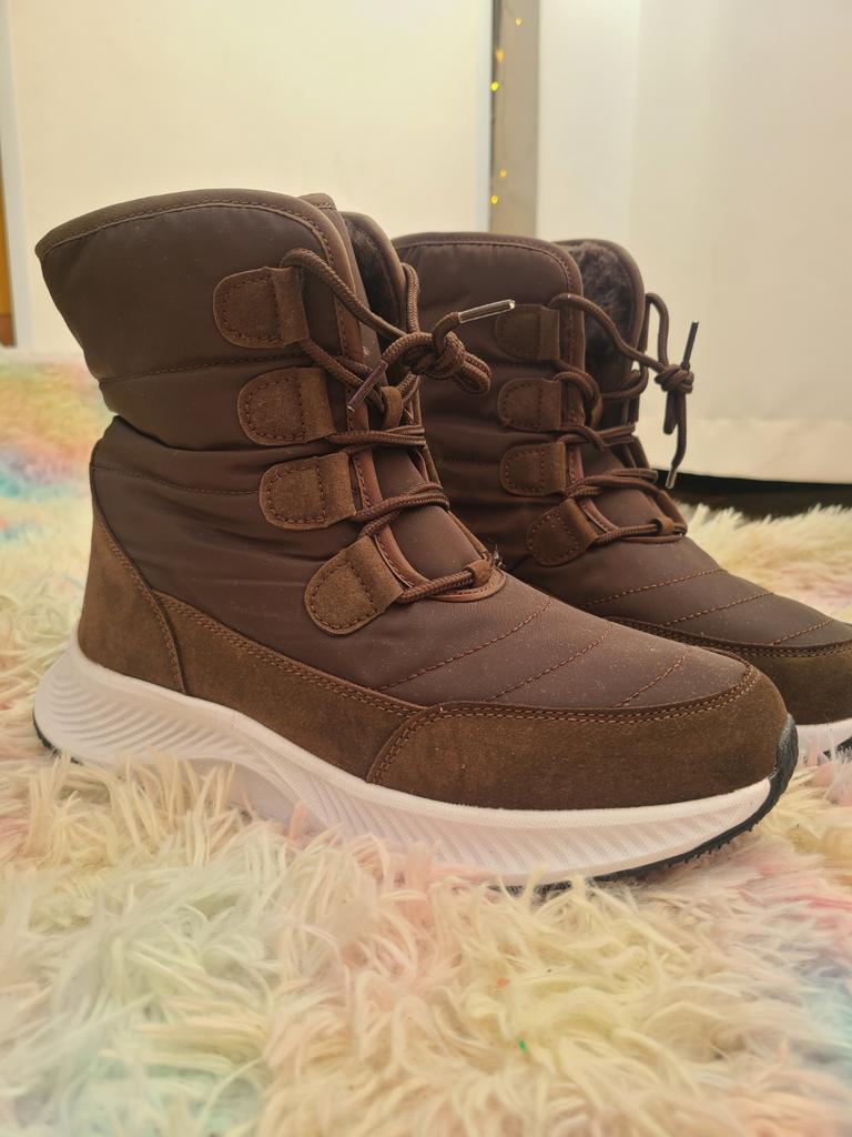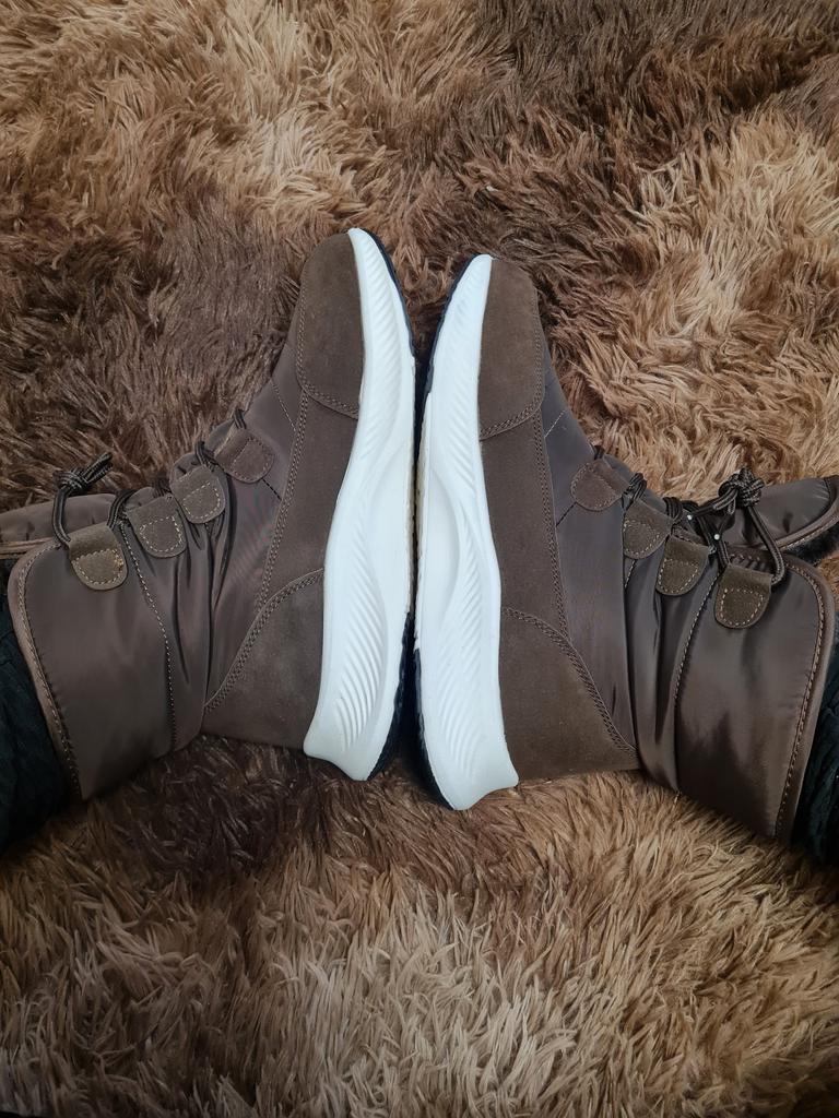 Stivali comodi e caldi per l'inverno Foderato con soffice pelliccia sintetica a pelo lungo. La suola è comoda, elastica, realizzata con materiali in schiuma, comoda per i giochi invernali o per camminare, come le scarpe da ginnastica. Il tessuto superiore è impermeabile e dispone di un sistema di allacciatura affidabile.. Buono per bambini e adulti. Vengono forniti in una confezione. L'ho ricevuto in perfette condizioni L'ho ordinato nel colore cioccolato. Bella ombra. Per la misura del piede 36 ho ordinato la taglia 38 secondo la guida alle taglie. Si adatta perfettamente