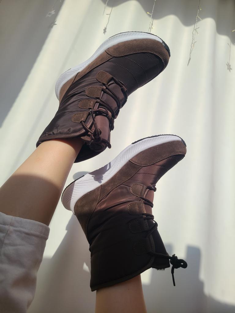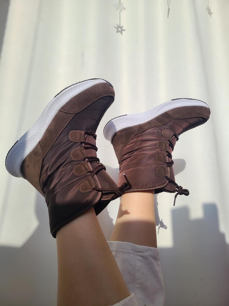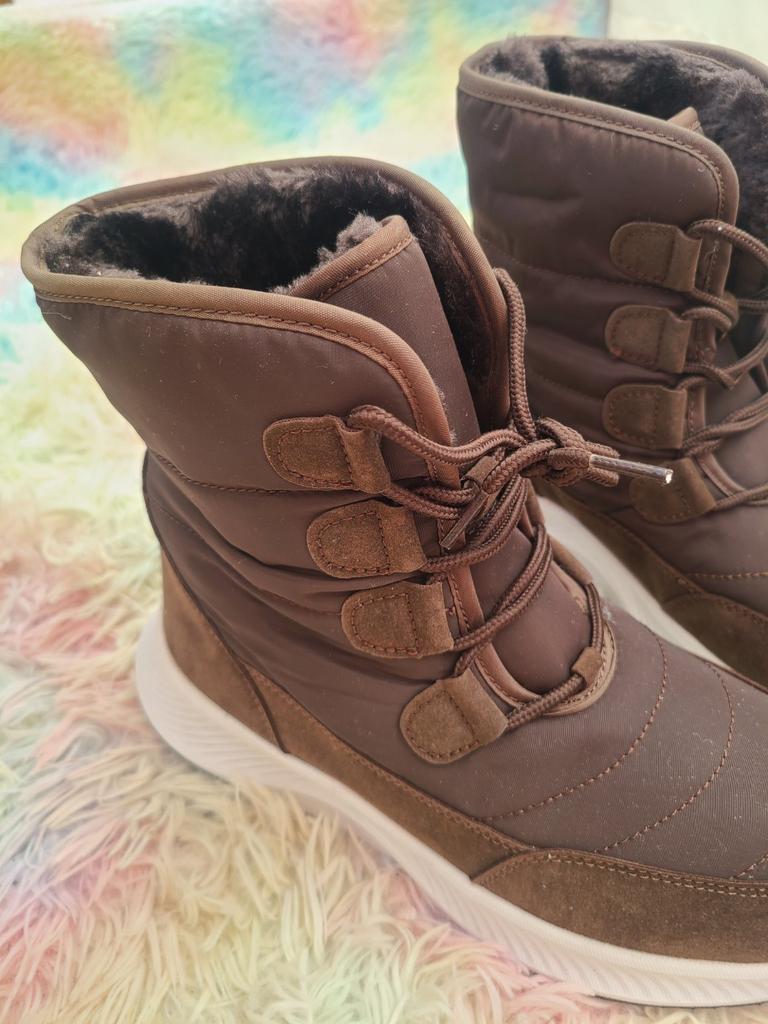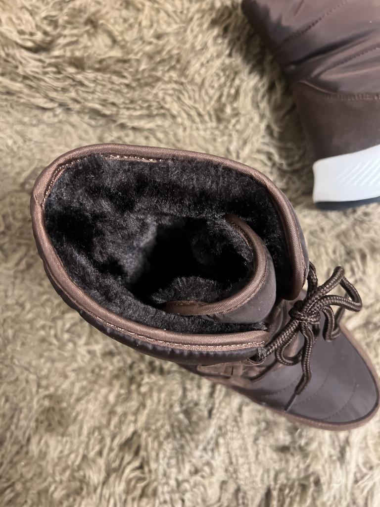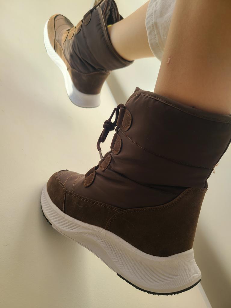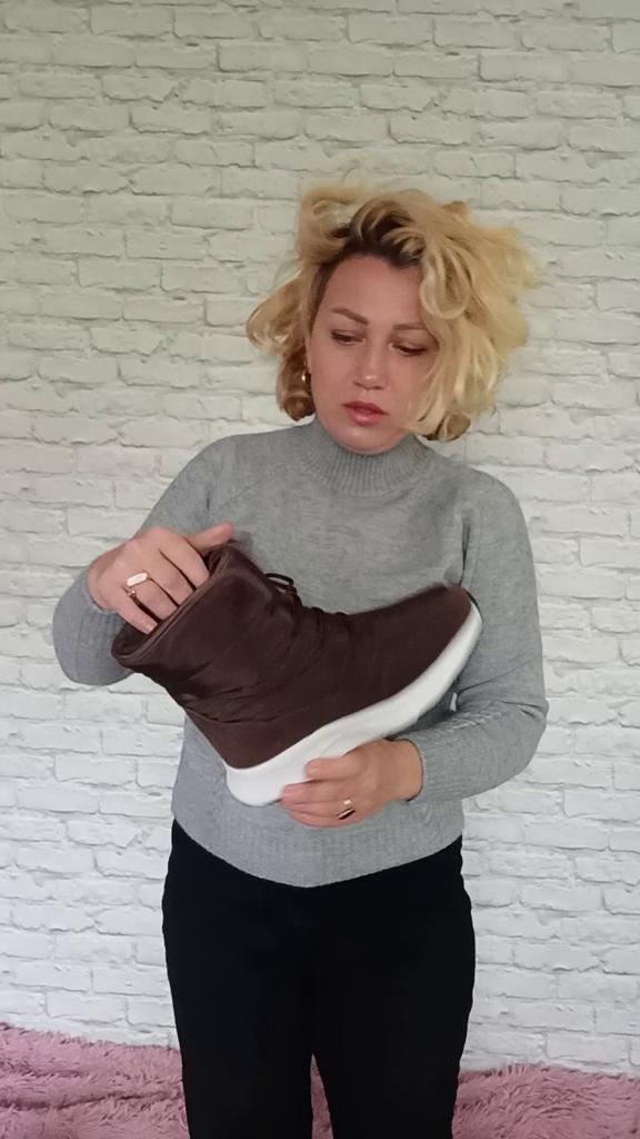 Stivali comodi e caldi per l'inverno Foderato con soffice pelliccia sintetica a pelo lungo. La suola è comoda, elastica, realizzata con materiali in schiuma, comoda per i giochi invernali o per camminare, come le scarpe da ginnastica. Il tessuto superiore è impermeabile e dispone di un sistema di allacciatura affidabile.. Buono per bambini e adulti. Vengono forniti in una confezione. L'ho ricevuto in perfette condizioni L'ho ordinato nel colore cioccolato. Bella ombra. Per la misura del piede 36 ho ordinato la taglia 38 secondo la guida alle taglie. Si adatta perfettamente