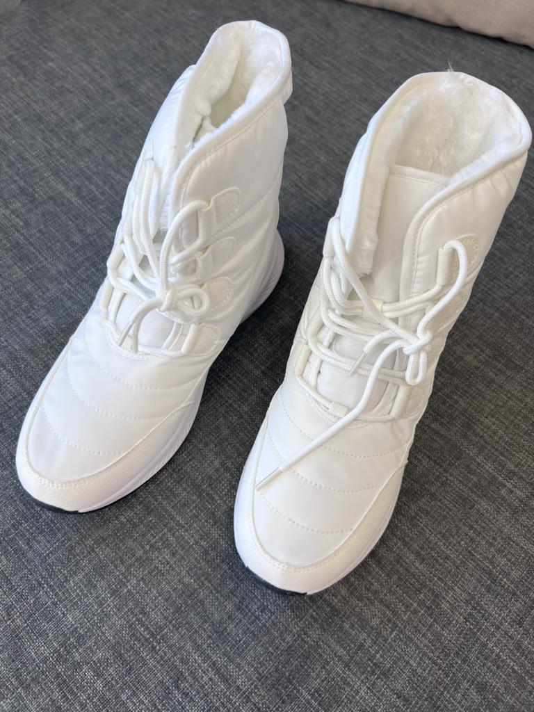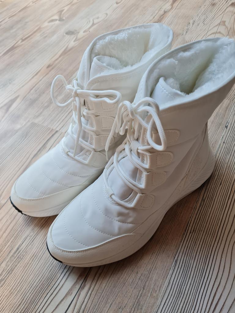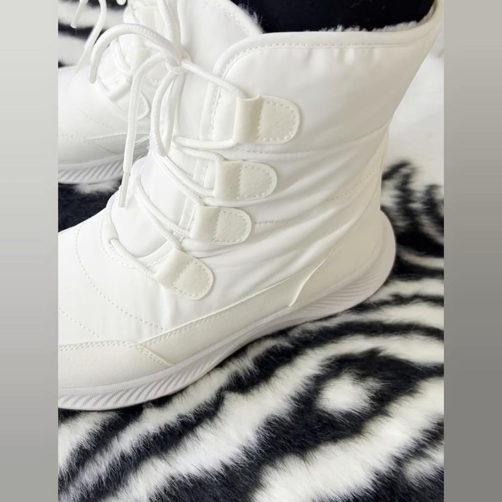 * Stivali invernali nella taglia 41 in bianco* ❄️𝗟𝗶𝗲𝗳𝗲𝗿𝘇𝗲𝗶𝘁 4 settimane in Germania ❄️𝗟𝗶𝗲𝗳𝗲𝗿𝘂𝗺𝗳𝗮𝗻𝗴 1 paio di stivali ❄️𝗤𝘂𝗮𝗹𝗶𝘁ä𝘁 Ho ordinato le scarpe nella taglia 41, anche se di solito ho la taglia 40 giorni... Tuttavia, ho utilizzato i centimetri del produttore come guida e quindi ho ordinato una taglia in più. È stata una buona decisione perché gli stivali mi stanno bene... ma non so cosa succede se indosso calzini spessi in inverno e se diventano troppo stretti. 🤔🧦 Le scarpe sono morbidamente foderate con finta pelliccia all'interno. La fattura sembra buona... non ci sono fili che sporgono. 👌 Dall'esterno, gli stivali possono essere facilmente allacciati con i lacci. La suola sembra buona, il profilo sembra antiscivolo. 👍 ❄️𝗙𝗮𝘇𝗶𝘁 Sono curioso di sapere come reggono le scarpe in inverno, se ti tengono al caldo e se ti tengono caldo e quanto velocemente si sporcano. Spero che il materiale sia resistente alle macchie. 😁 Sfortunatamente, non sono riuscito a trovare un'etichetta sulla composizione del materiale e non posso dire nulla. Tutto sommato, le scarpe sembrano valere i loro soldi. 👌