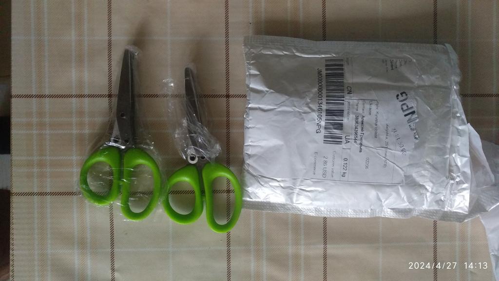 Grazie. Il prodotto è arrivato integro. Le forbici sono piccole e tagliate finemente. Va bene per l'aneto, e per le cipolle... per quelle molto magre e giovani.